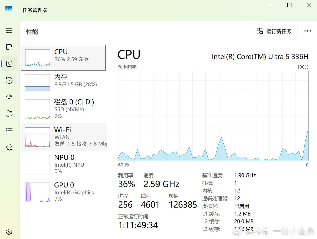 刚刚看到荣耀林总,分享了即将发布的荣耀MagicBook 14 2026款,系统任务管理器的性能页面,通过图片内容可以对这款新机有初步了解,例如采用Ultra5 336H处理器、内存搭载32GB等内容,小伙伴还想了解什么硬件配置呢?畅聊数码新品 数码资讯