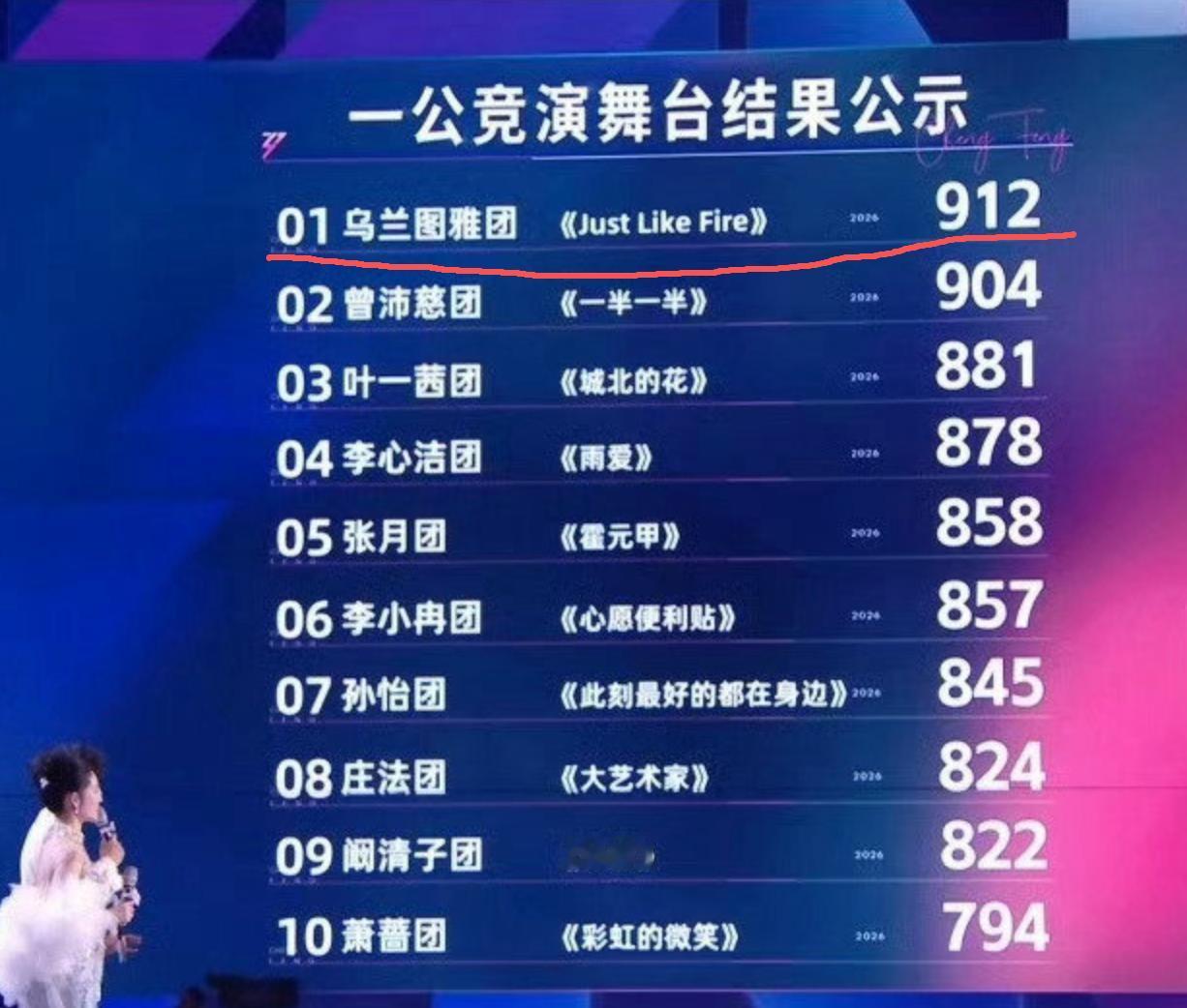 浪姐一公直播刚落幕,乌兰图雅带着者来女万千惠,一首Just Like Fire直接拿下912票,断层碾压其他队伍,稳坐第一宝座