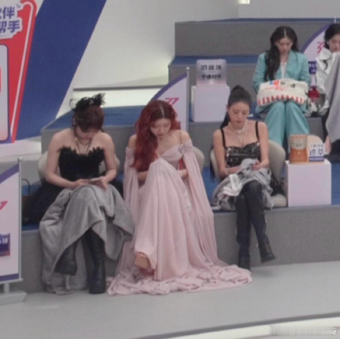 浪姐一公下半场后台实况p1 李小冉组三人皱眉看热搜中p2 曾沛慈组美美自拍中🤳
