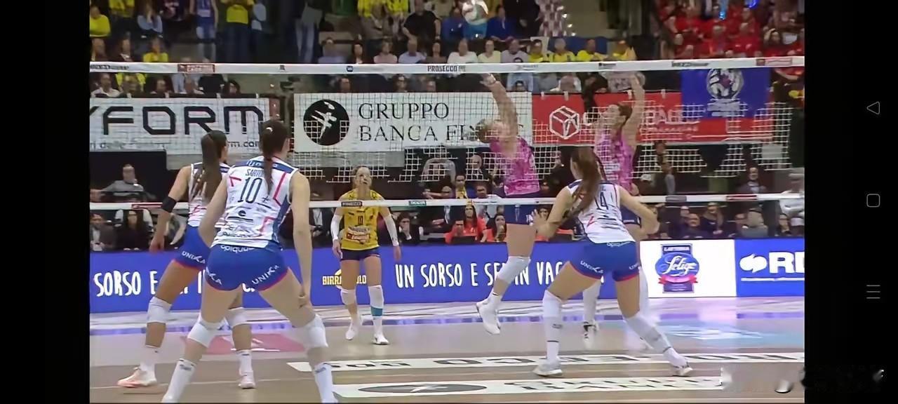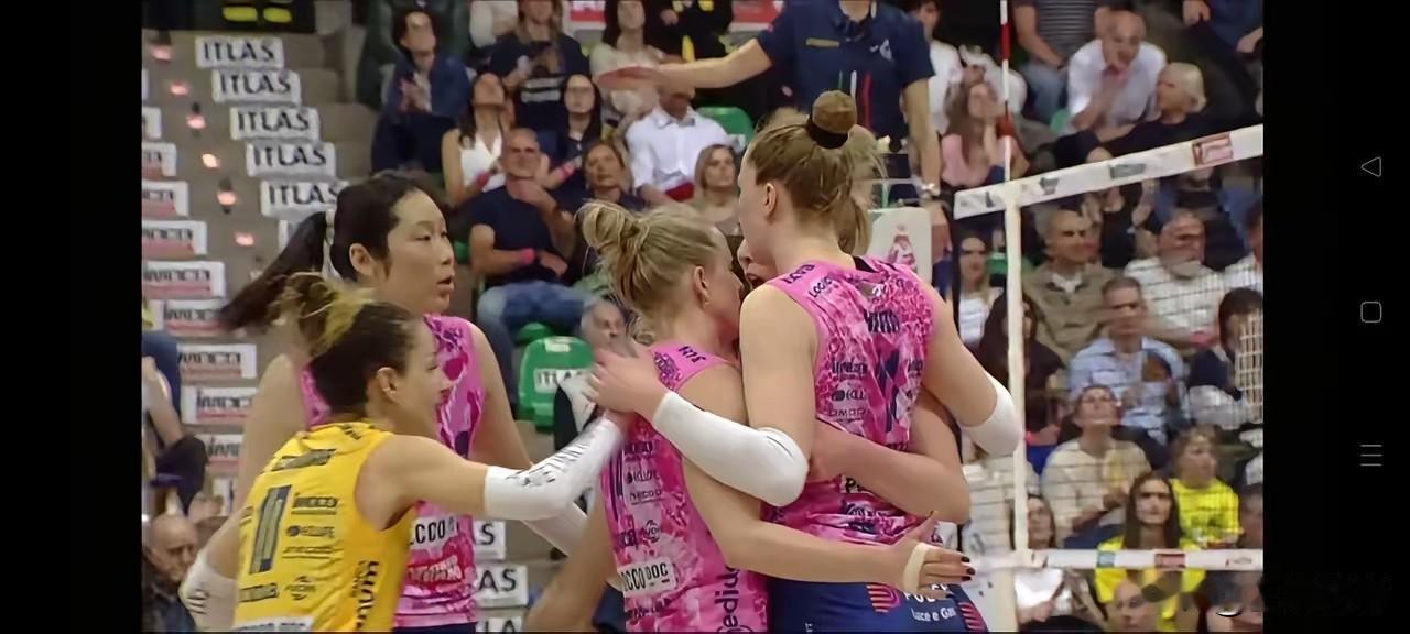 今天凌晨结束的意甲女排季后赛总决赛朱婷所在的科内与艾格努所在的米兰的第一回合较量,科内2分险胜米兰!