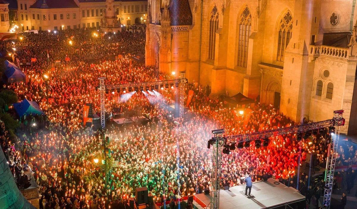 匈牙利大选前夕,总理维克多·欧尔班的支持者们挤满布达佩斯广场,举行大规模造势集会