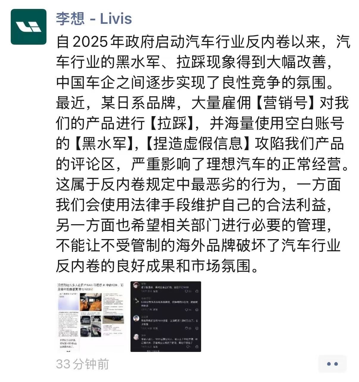 东风日产高管回应李想喊话其实我也觉得可能不是东风日产做的,合资公司还真的很少搞这