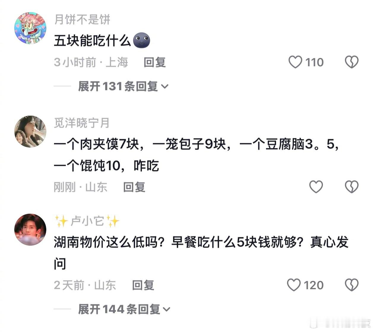 关于5块钱够不够吃早餐,评论区吵起来了。