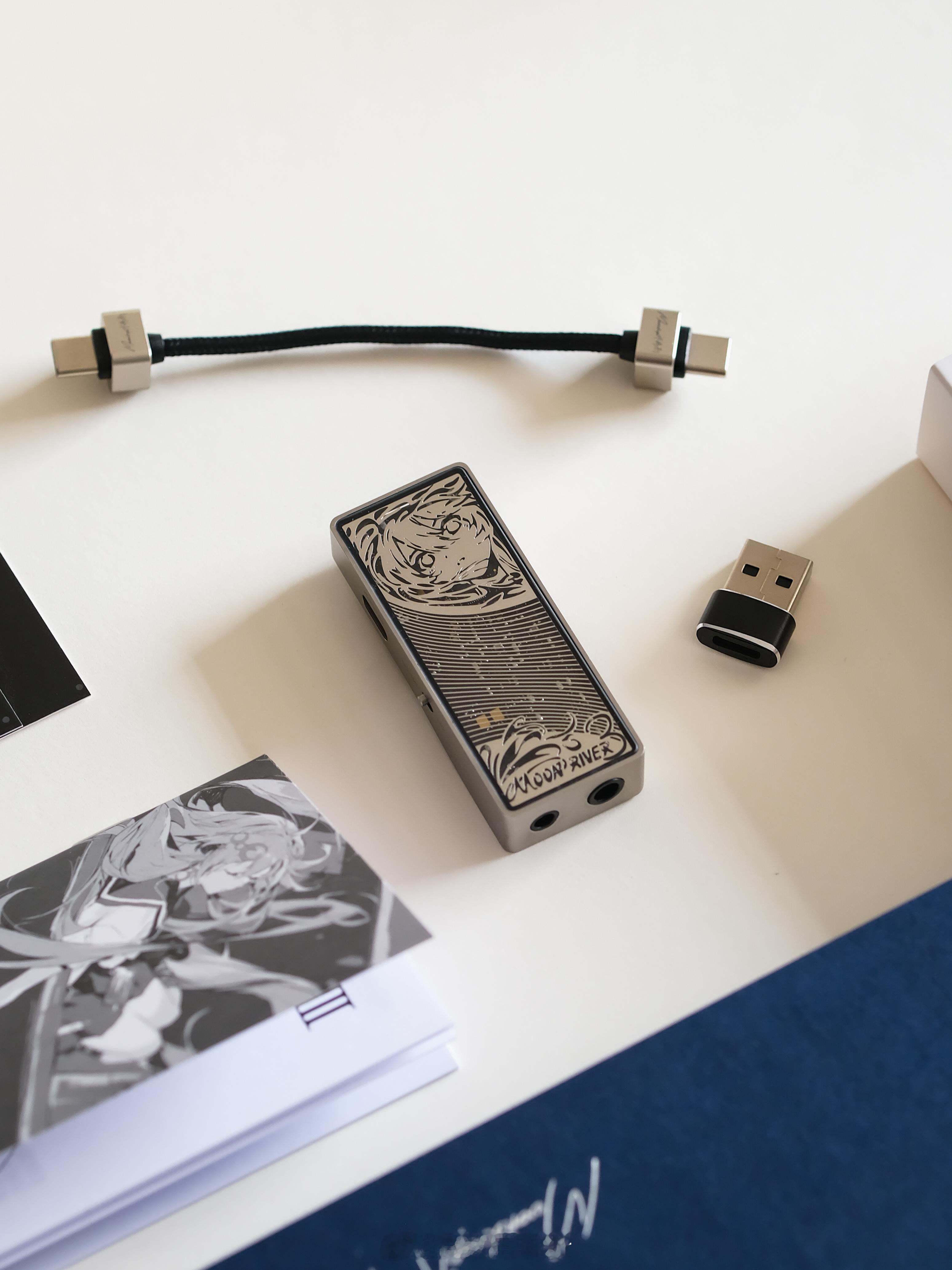 一体不锈钢CNC精雕,拿在手里分量感十足。最绝的是背板设计,水月友希藏在半透视窗里,工业风里透着二次元的小巧思。