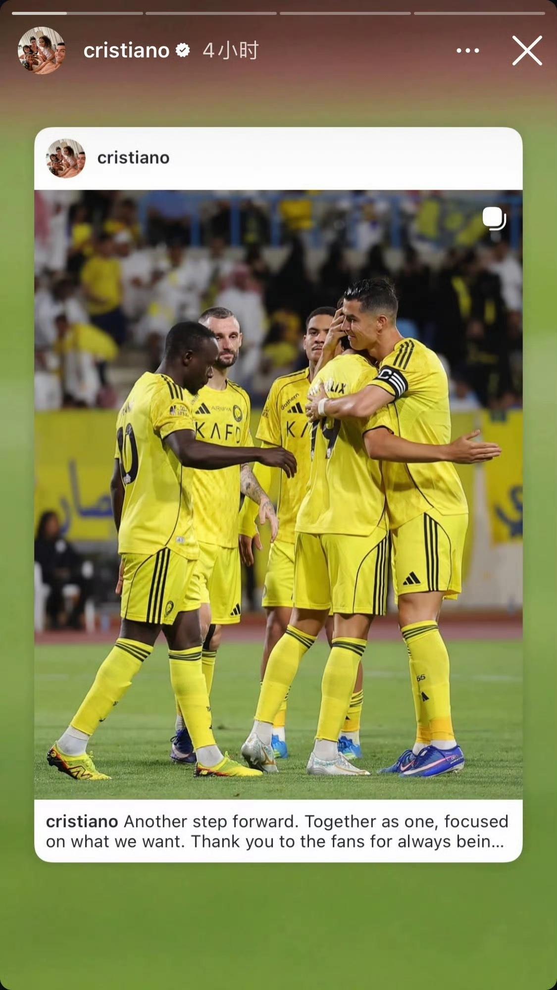 绝代双骄另一人C罗在凌晨的沙特联中,打入关键一球,帮助球队2-0取胜,全场最佳却是自己的小兄弟菲利克斯。