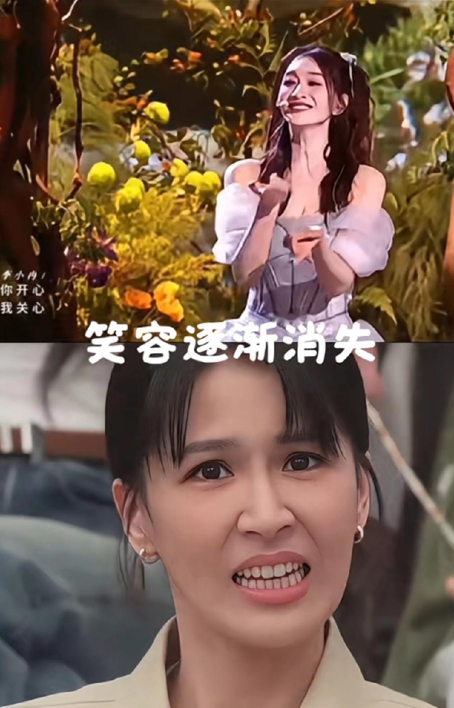 一开始还是美美的笑容,后面逐渐多了问号,慢慢有点用力,好像想帮李小冉把调子掰回来。