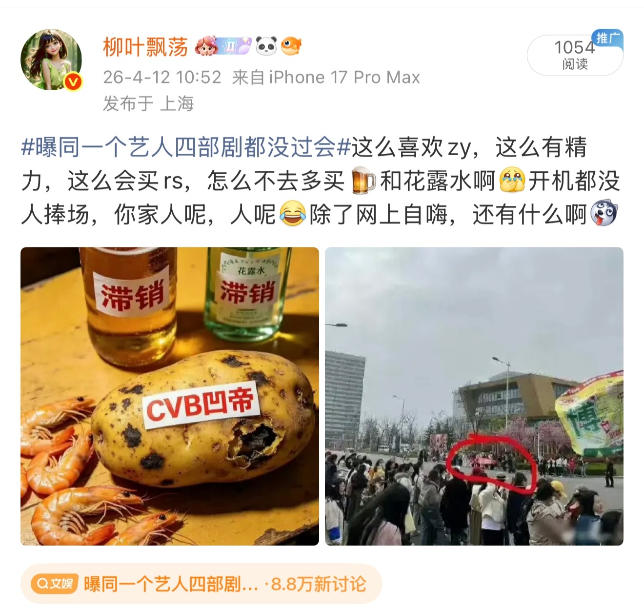 下手真的快啊,这么快帖子已经看不见了再发也进不去话题了某家人在大眼安排了天眼自己糊了找找自身的原因吧,别成天捆绑他人,捆绑也不会给你带来任何好处,只会增加众人对你更猛烈的反感,至于想拉别人共沉沦,那根本不存在,业内门清,借着时间差zy,那就等着官宣的时候猛打你的脸