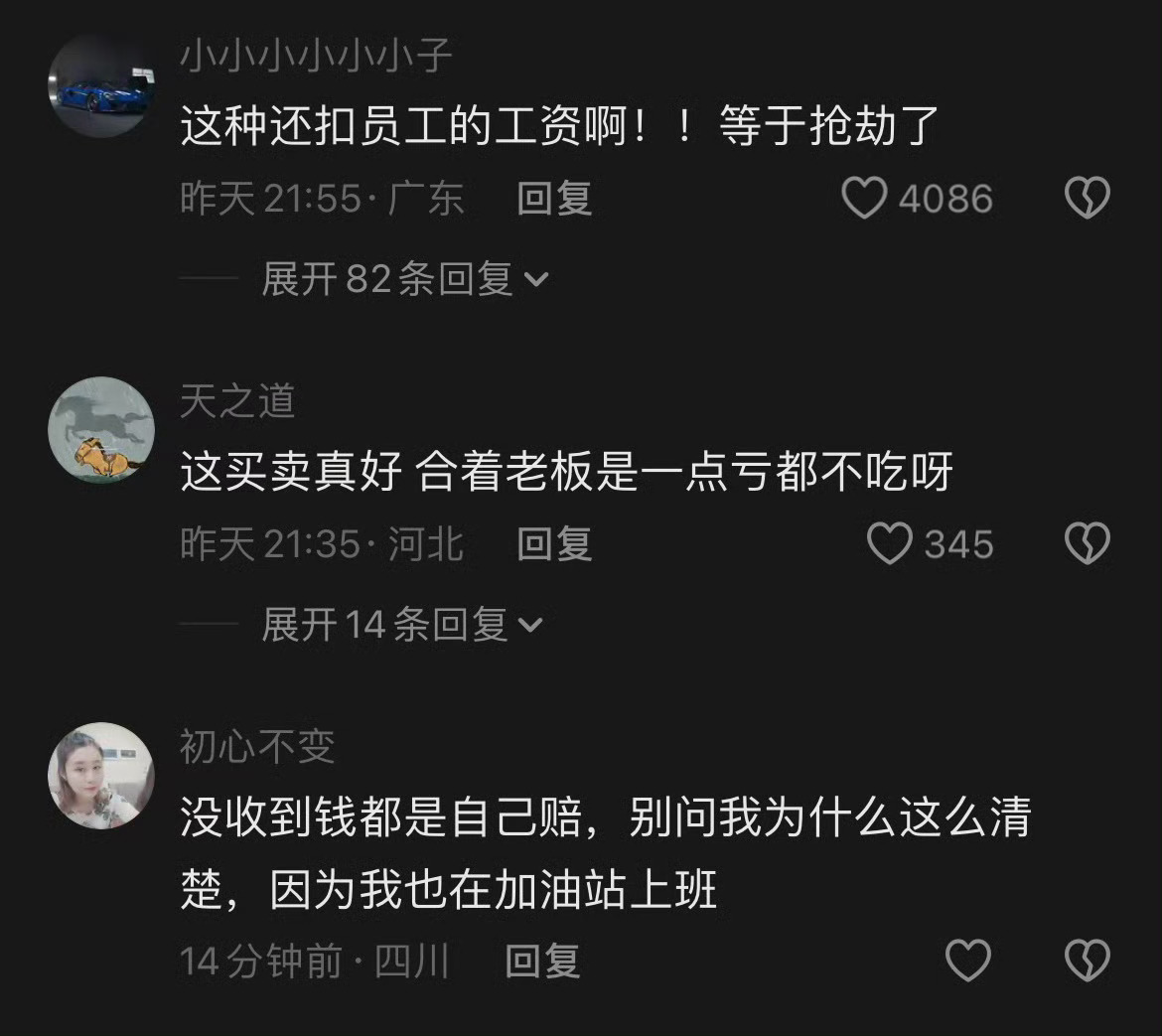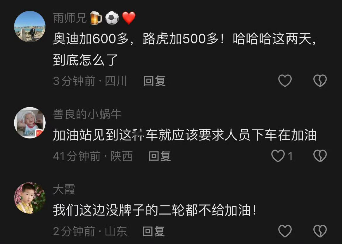 最近总看到路虎、奥迪、保时捷加完油就直接逃单,实在太没素质了。自己开着豪车却赖油费,还让加油员背锅,加油站也该承担责任。奥迪逃单加油站员工垫付4天工资