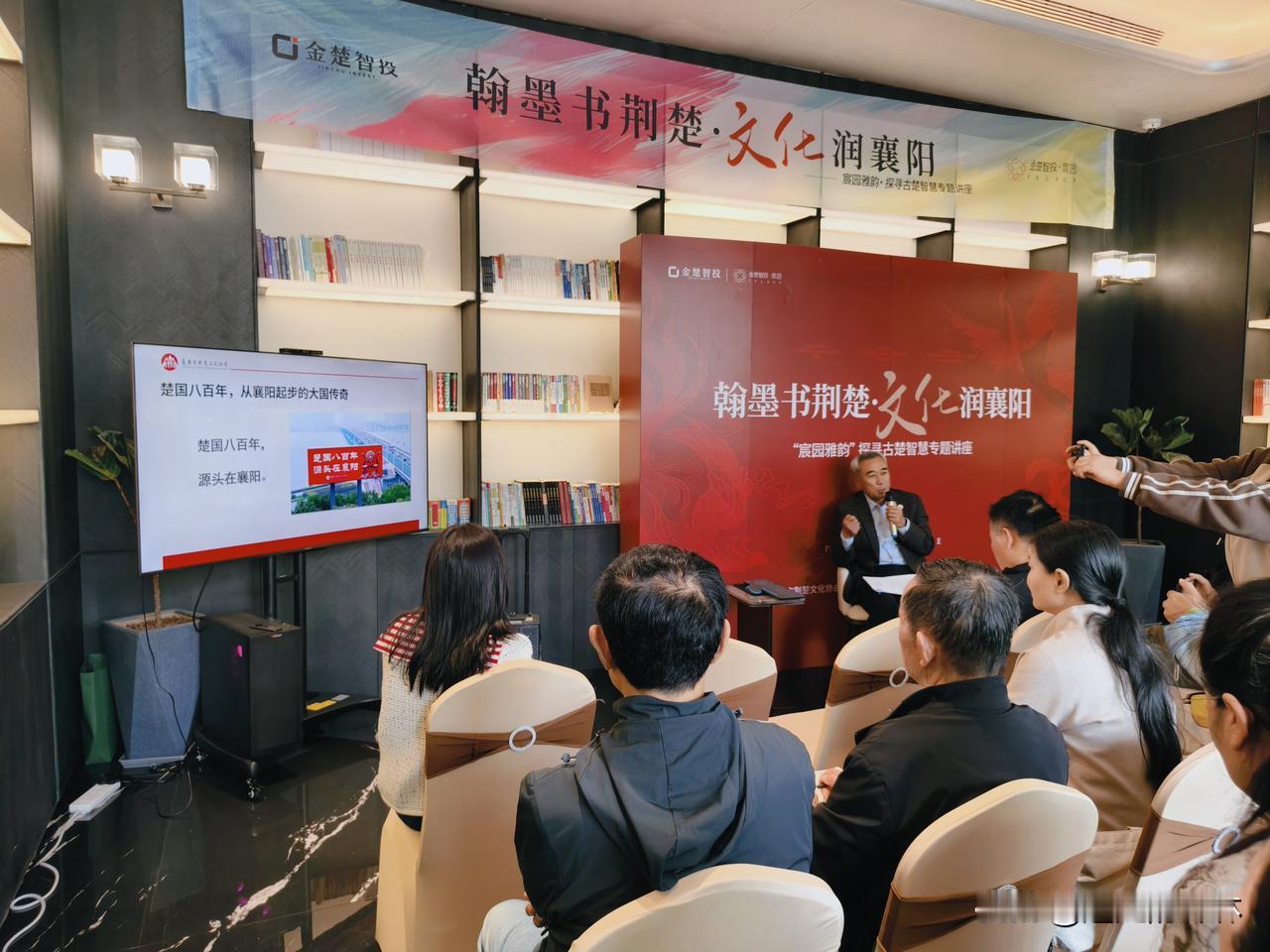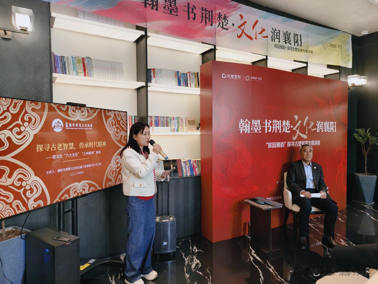 4月12日上午,“翰墨书荆楚·文化润襄阳”——“宸园雅韵”高端文化活动第七场如期开讲。一场温润雅致、轻松好懂的楚文化盛宴,让到场的朋友们听得津津有味。活动由襄阳市荆楚文化协会副主席刘玉玲优雅主持,荆楚文化协会副主席姚景灿到场聆听。