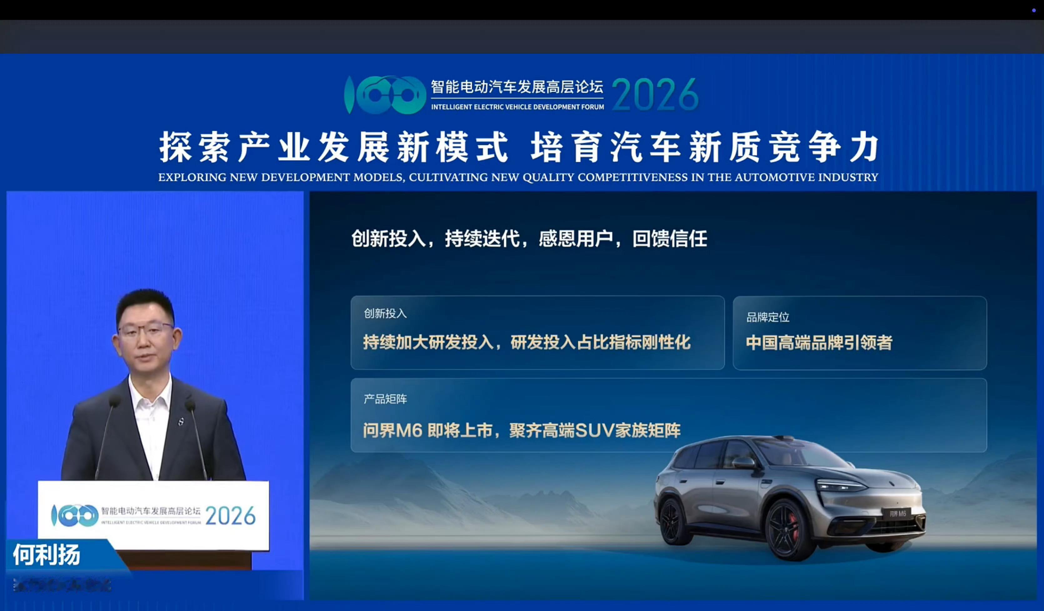 车若初见 2026智能电动汽车发展高层论坛在北京召开,聚焦新能源汽车“四化”发展,赛力斯汽车总裁何利扬分享问界成绩与行业思考。