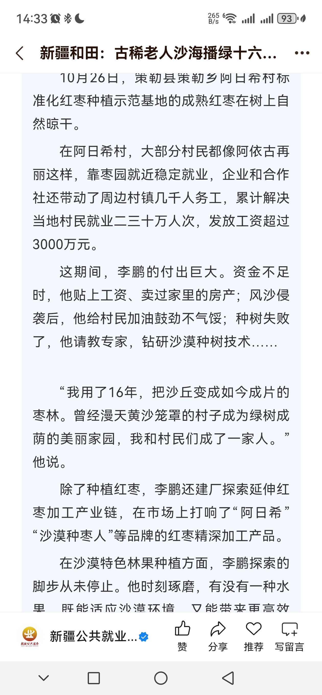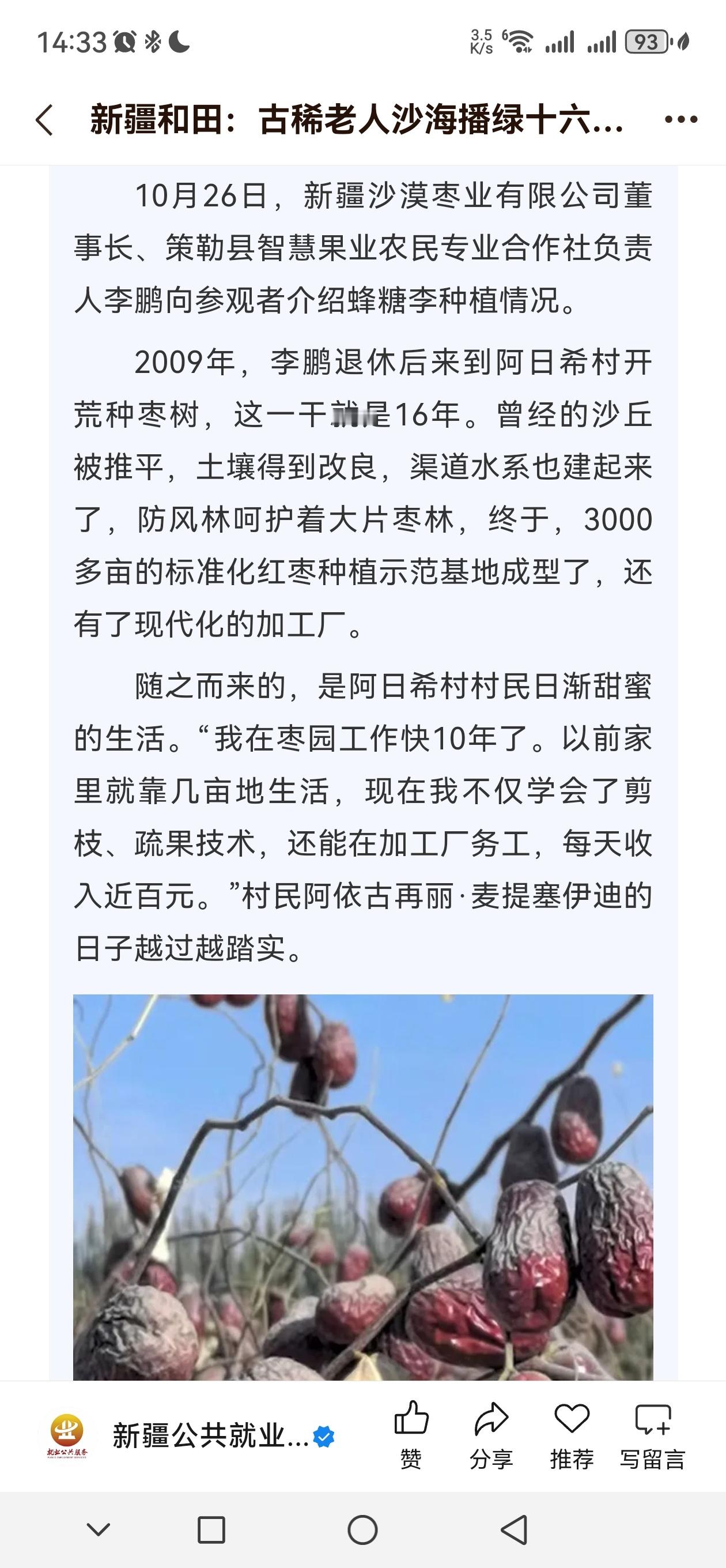 十个勤天种地吧 李老把沙丘变成如今成片的枣林🌲🌲曾经漫天黄沙笼罩的村子成为绿
