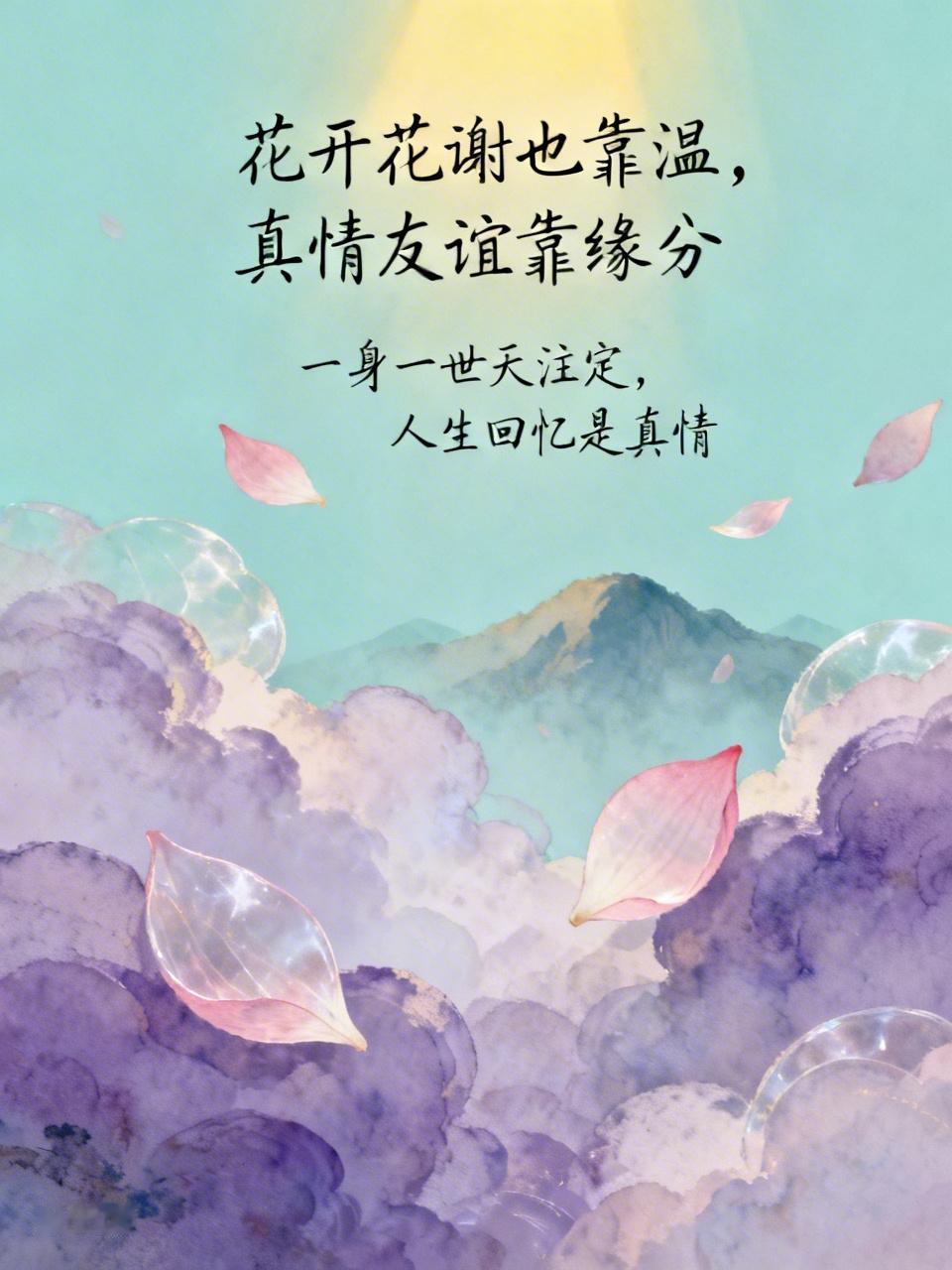 花开花谢也靠温, 真情友谊靠缘分, 一身一世天注定, 人生回忆是真情。 岁月流转