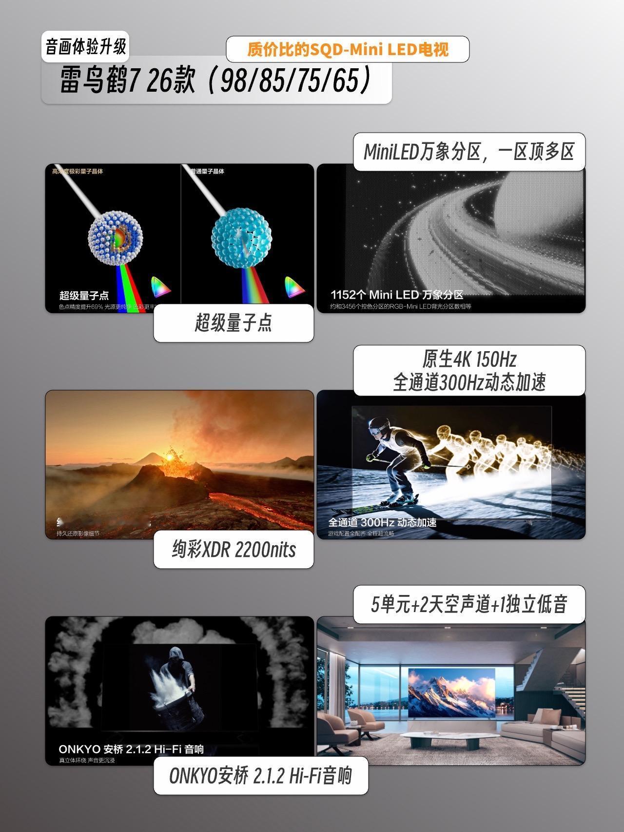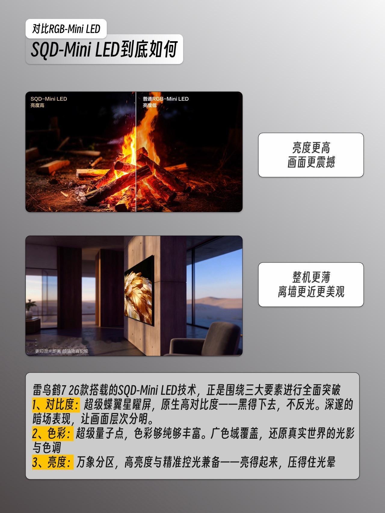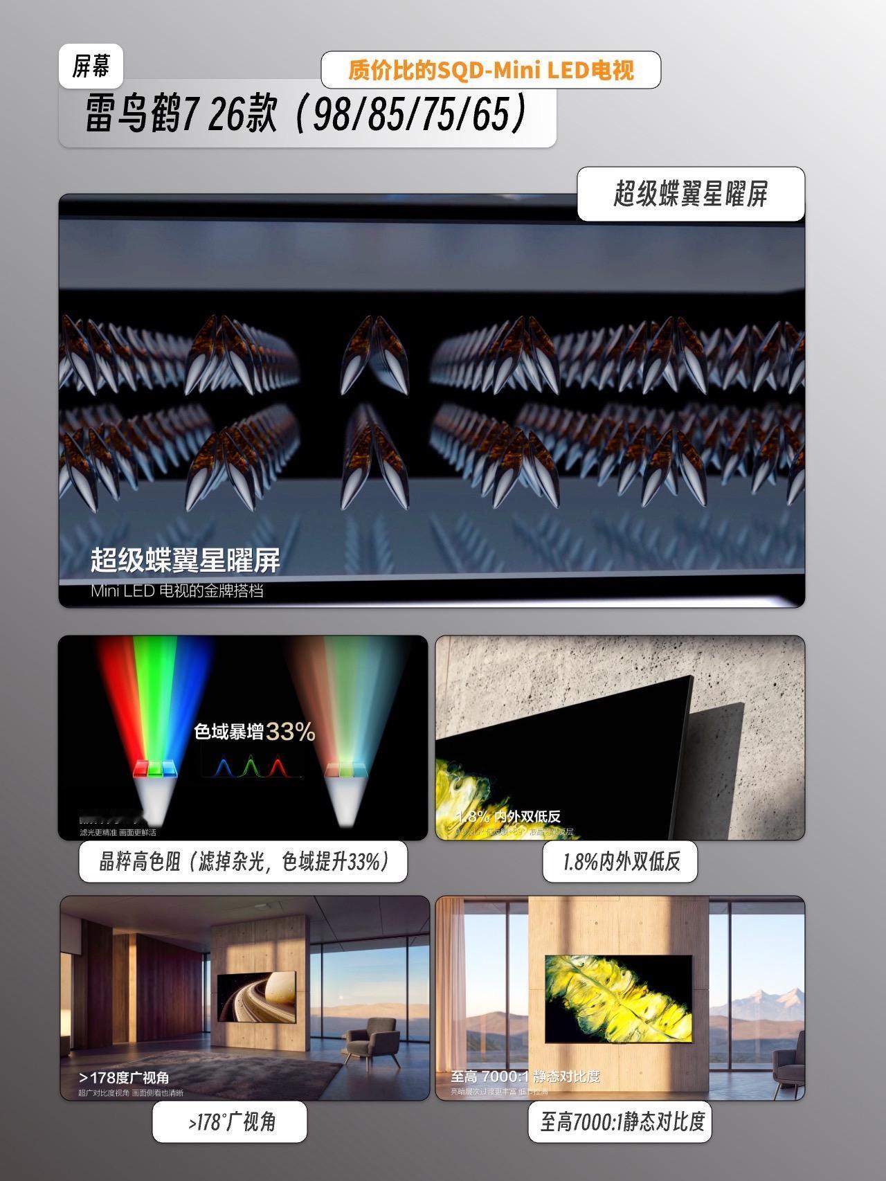1️⃣雷鸟鹤7 26款:画质卷王,SQD-Mini LED核心加持,追求极致观影体验直接冲