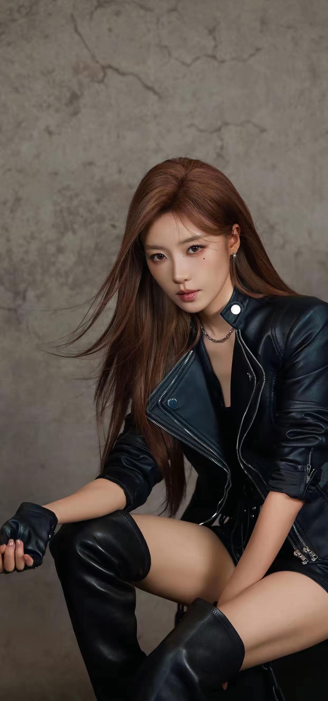 美女壁纸~一身酷黑皮衣,解锁飒爽气场。利落剪裁勾勒线条,金属细节点缀锋芒,眼神里