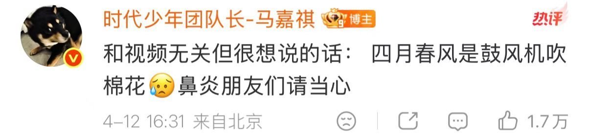 马嘉祺 杨柳絮别飘了和小马一起迎来了让人又爱又恨的春天