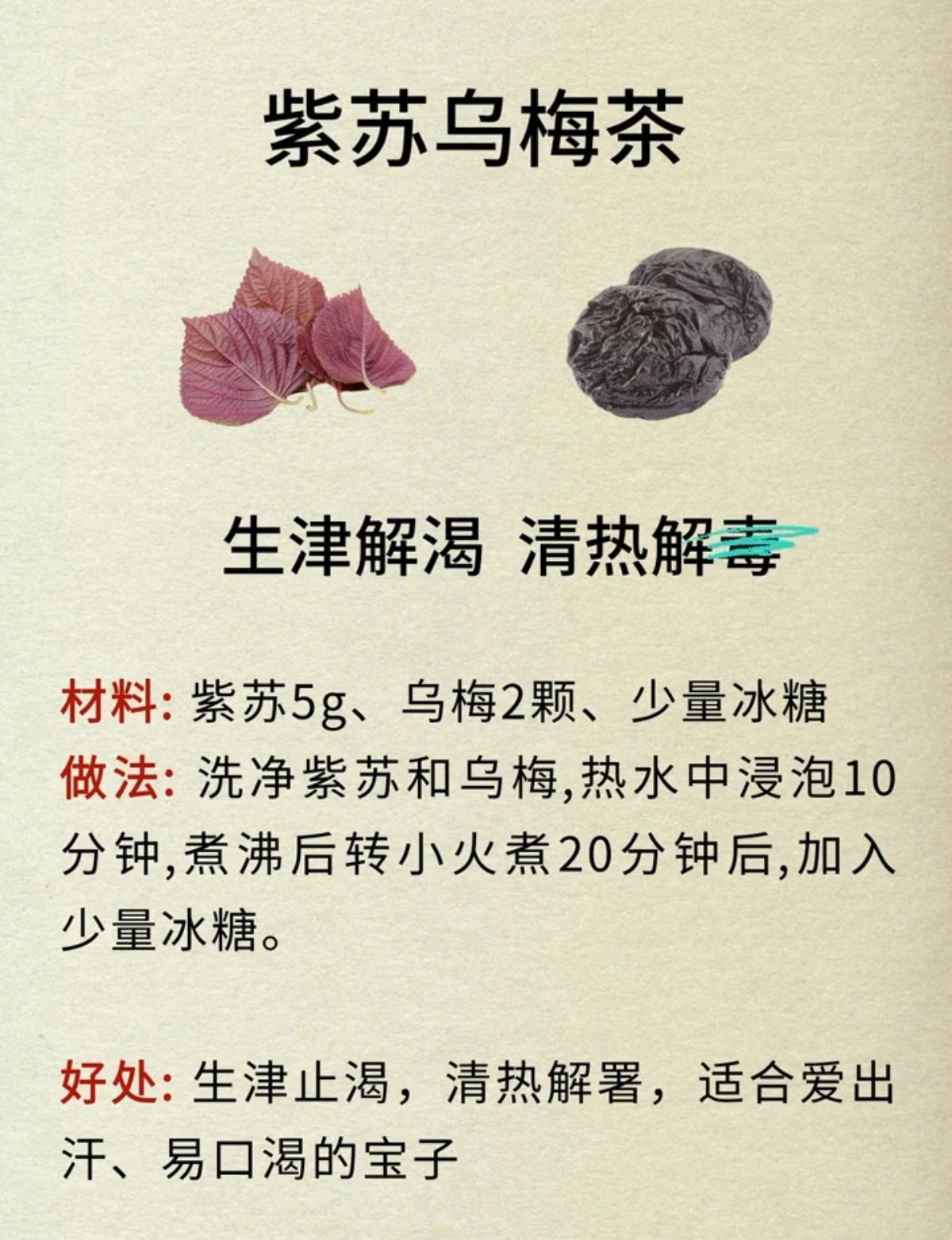 中医建议:多喝紫苏饮,赶走陈年寒湿!紫苏乌梅茶,生津解渴,清热解毒;紫苏姜糖茶,