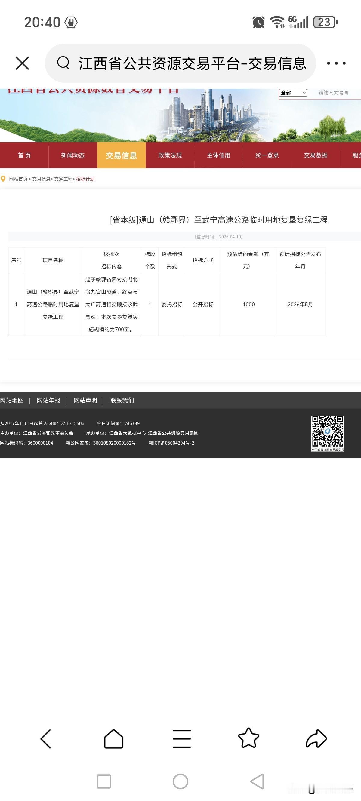好消息,江西通武高速公路复工加速中,3个项目招标公告发布。