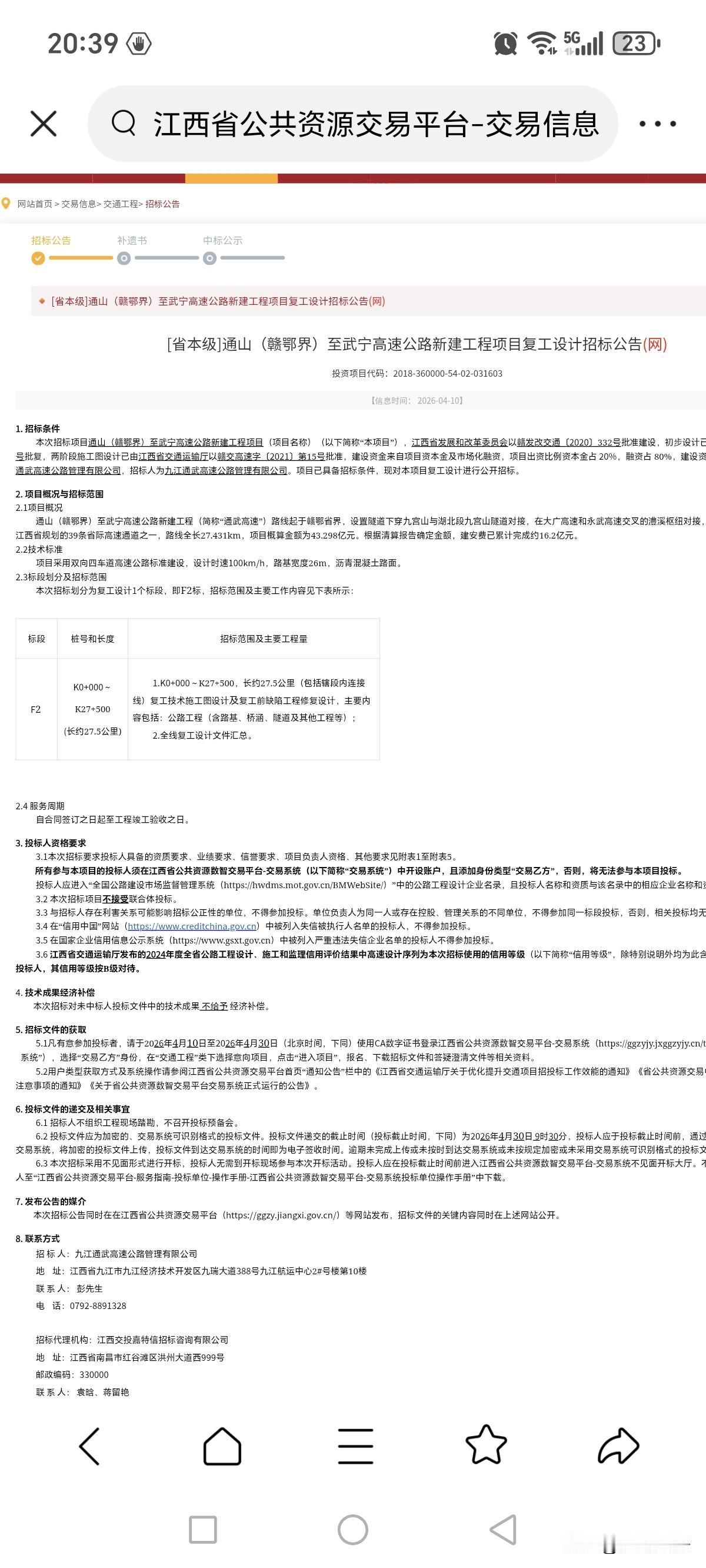 三:通山(赣鄂界)至武宁高速公路新建工程项目复工设计招标公告