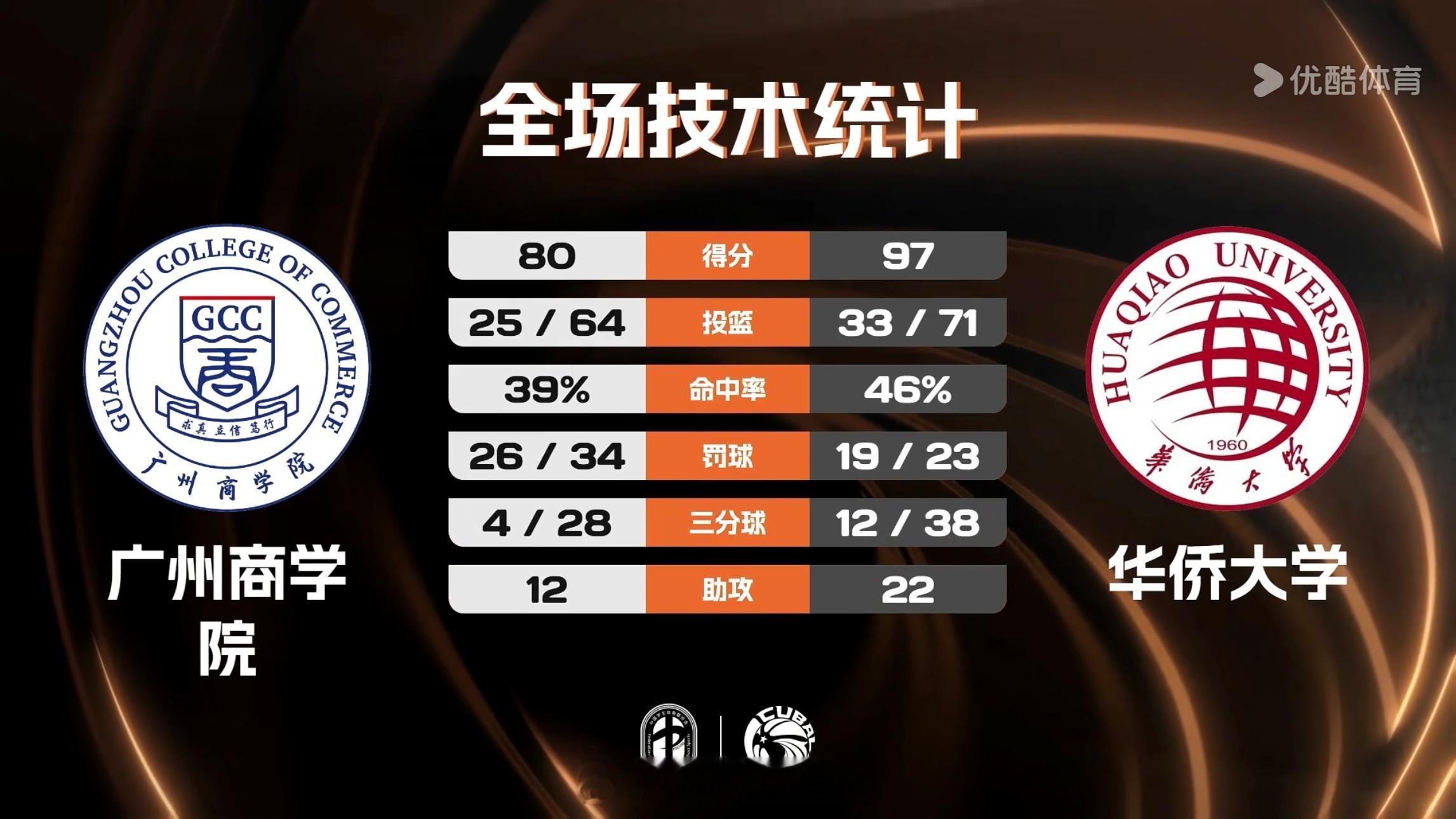 CUBAL东南赛区焦点战,华侨大学97比80轻取广州商学院,17分大胜在下一城!📈这场球就是三分球决定胜负的教科书:华大外线飙中12记三分,命中率高达31.6%,反观广商仅投进4个,直接被拉开分差。华大全场22次助攻,团队配合行云流水;而广商助攻只有12次,进攻端明显更依赖单打。虽然广商罚球次数更多,但华大82.6%的罚球命中率更稳定,最终稳稳拿下比赛。传统强队底蕴拉满,下一场继续冲!华大男篮 Cubal