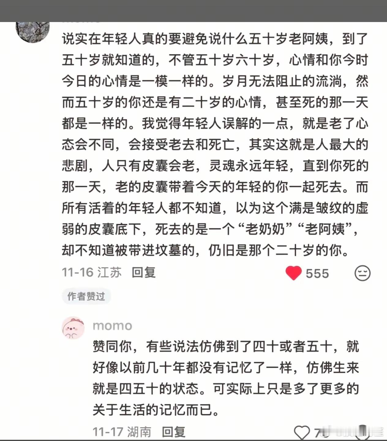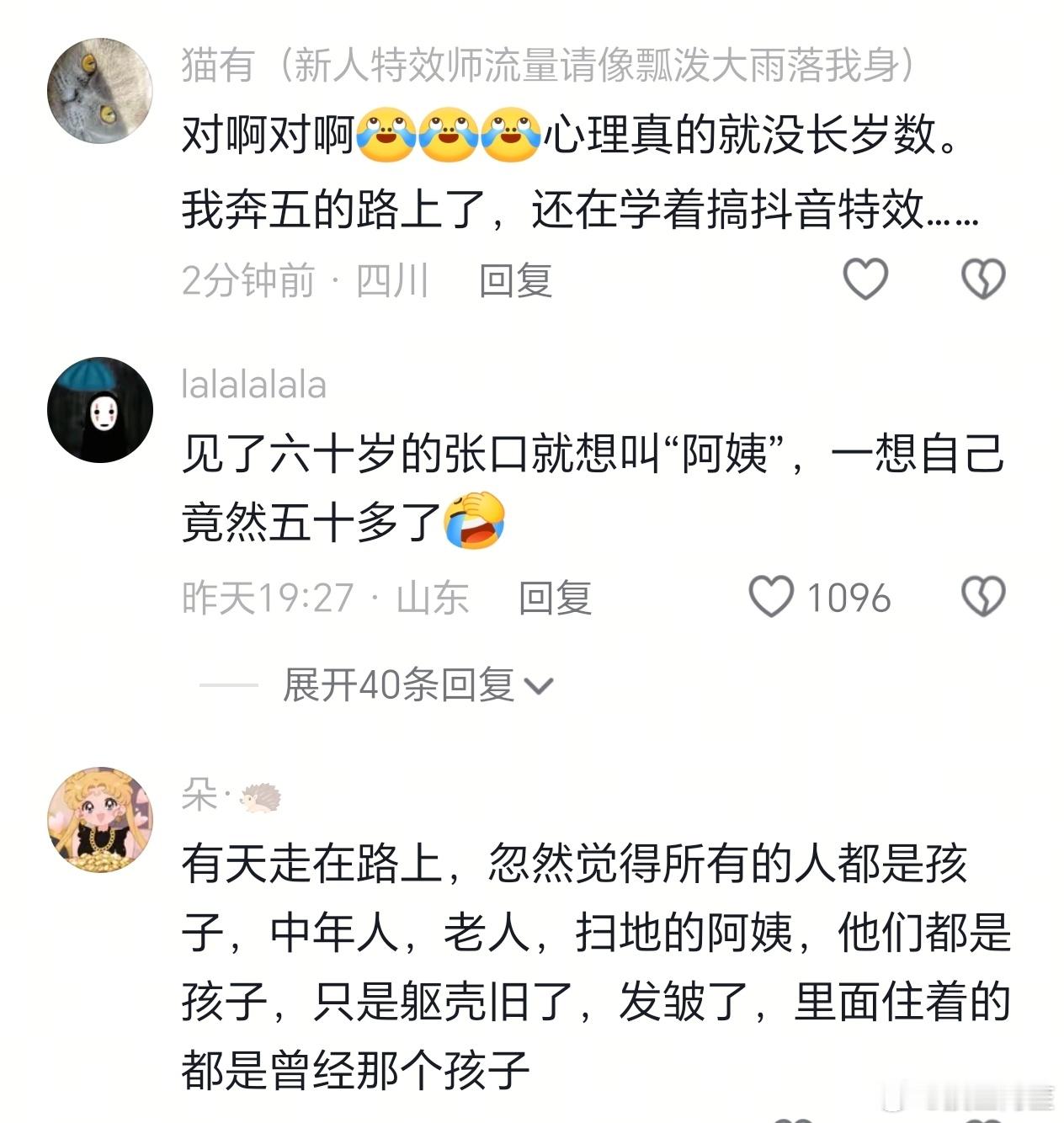 是啊,我真的不觉得现在的自己跟十八岁的自己心态上有什么太大的差别,甚至会觉得可能我50岁了也还是这样。人的灵魂永远都是年轻的。