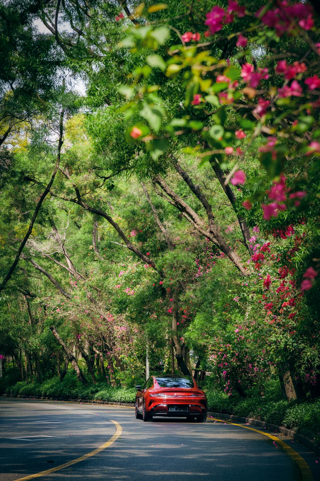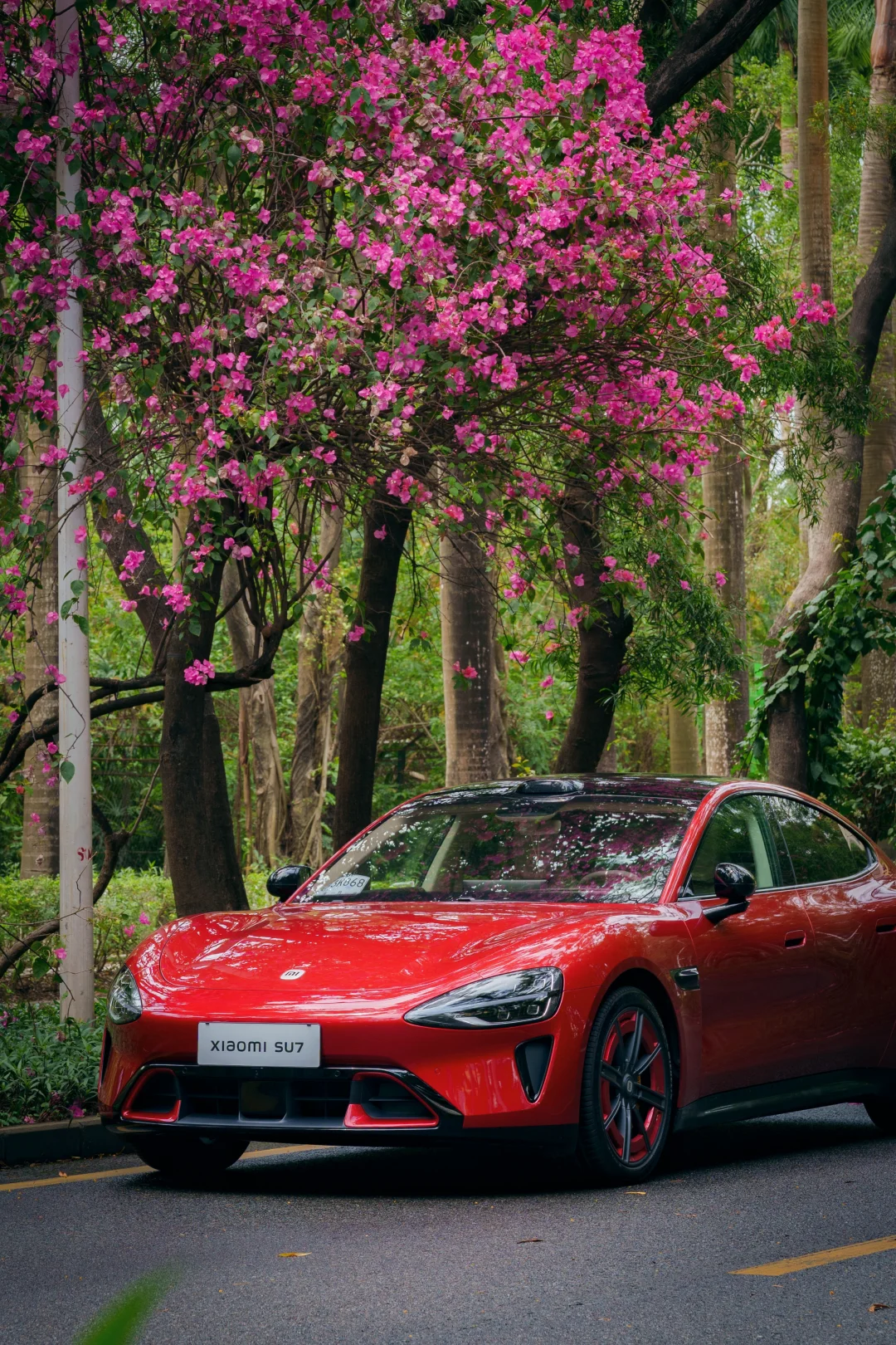 而今天,这条路上又多了一抹流动的风景——赤霞红配色的小米新SU7。它不只是一辆车,更像是春天里,一个会移动的惊叹号!
