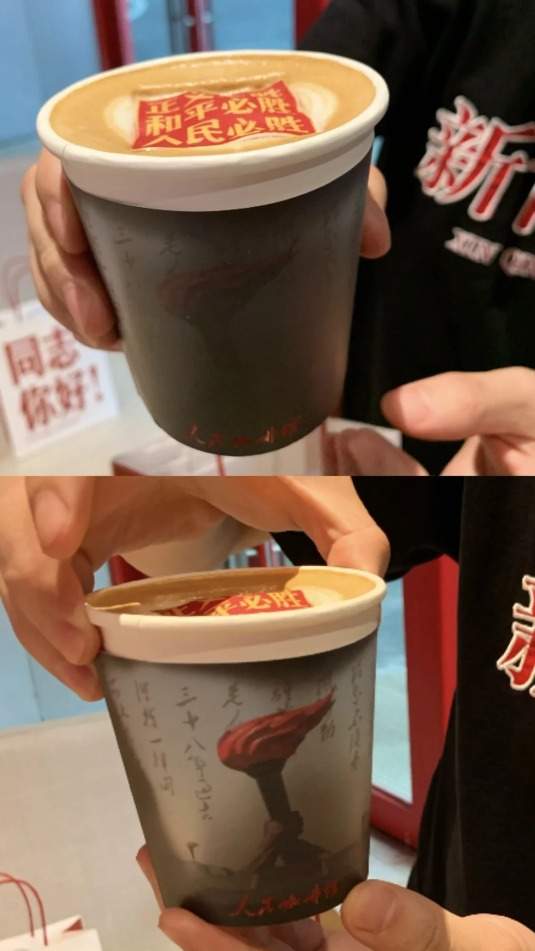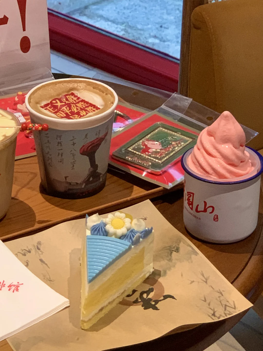 而且这家咖啡店很多东西都有小巧思,那个黑色杯套会变色(井冈山标志建筑)还能反复变色,真的太神奇了,我们三果断留了个做纪念!真的感觉是一家挺有意思的咖啡店!