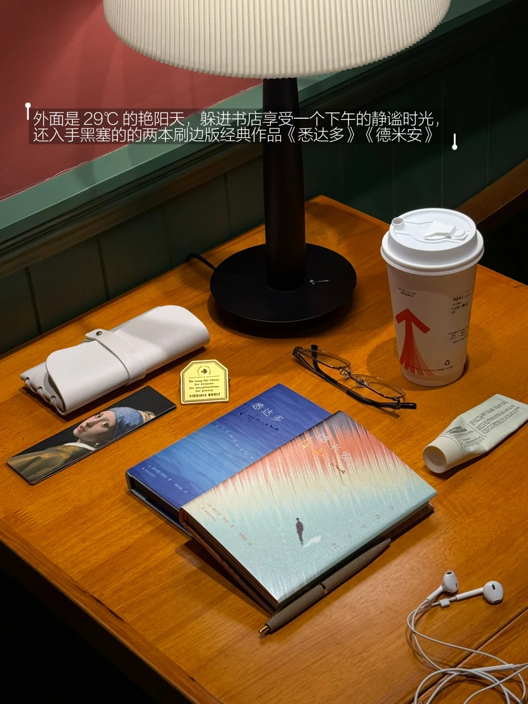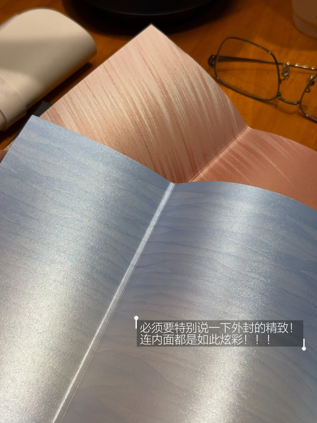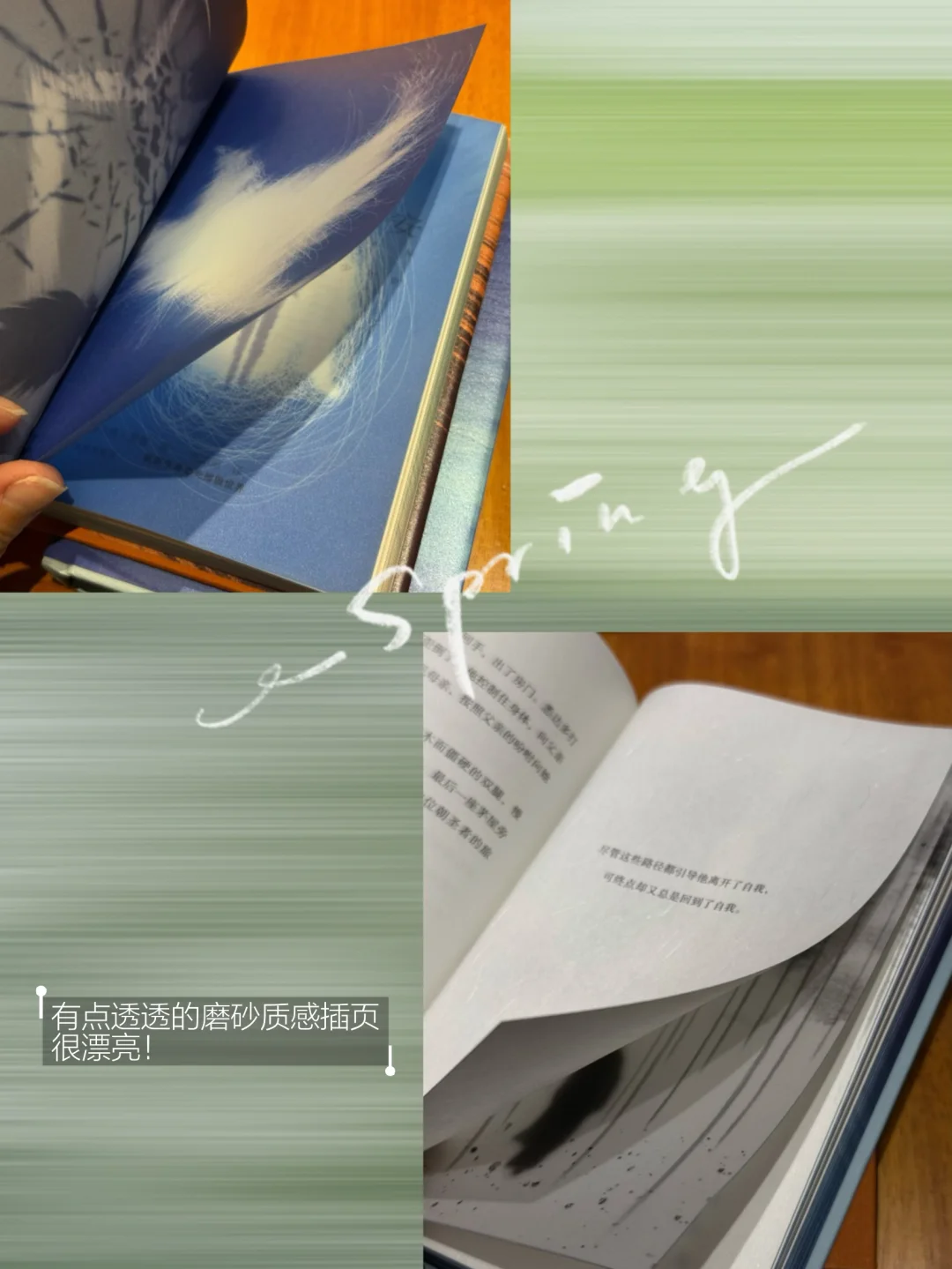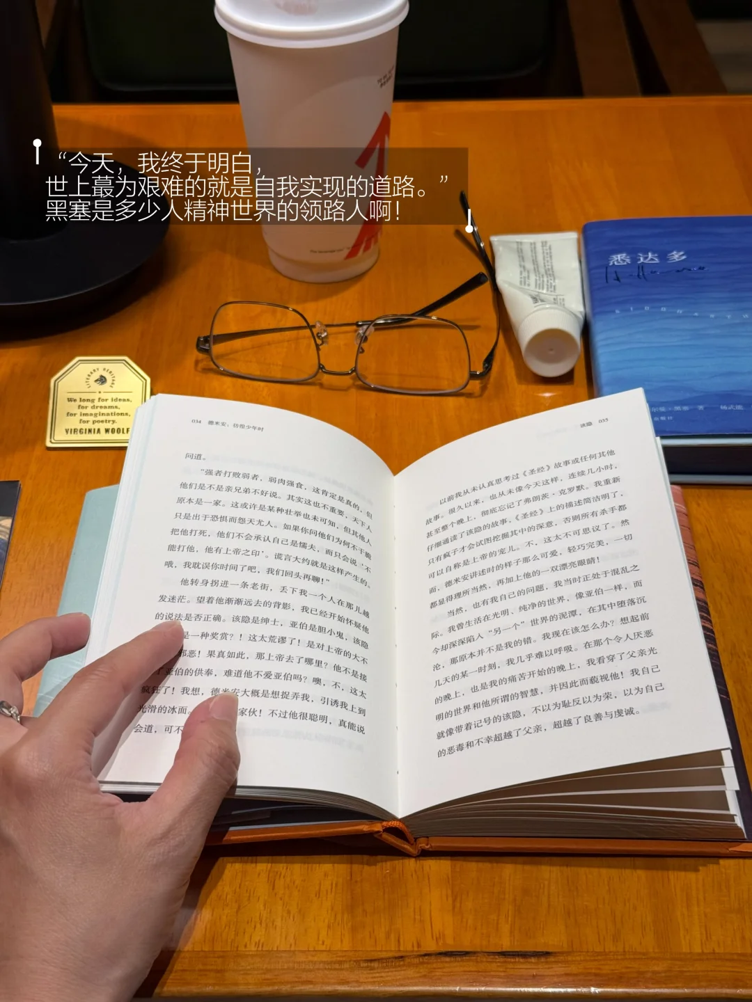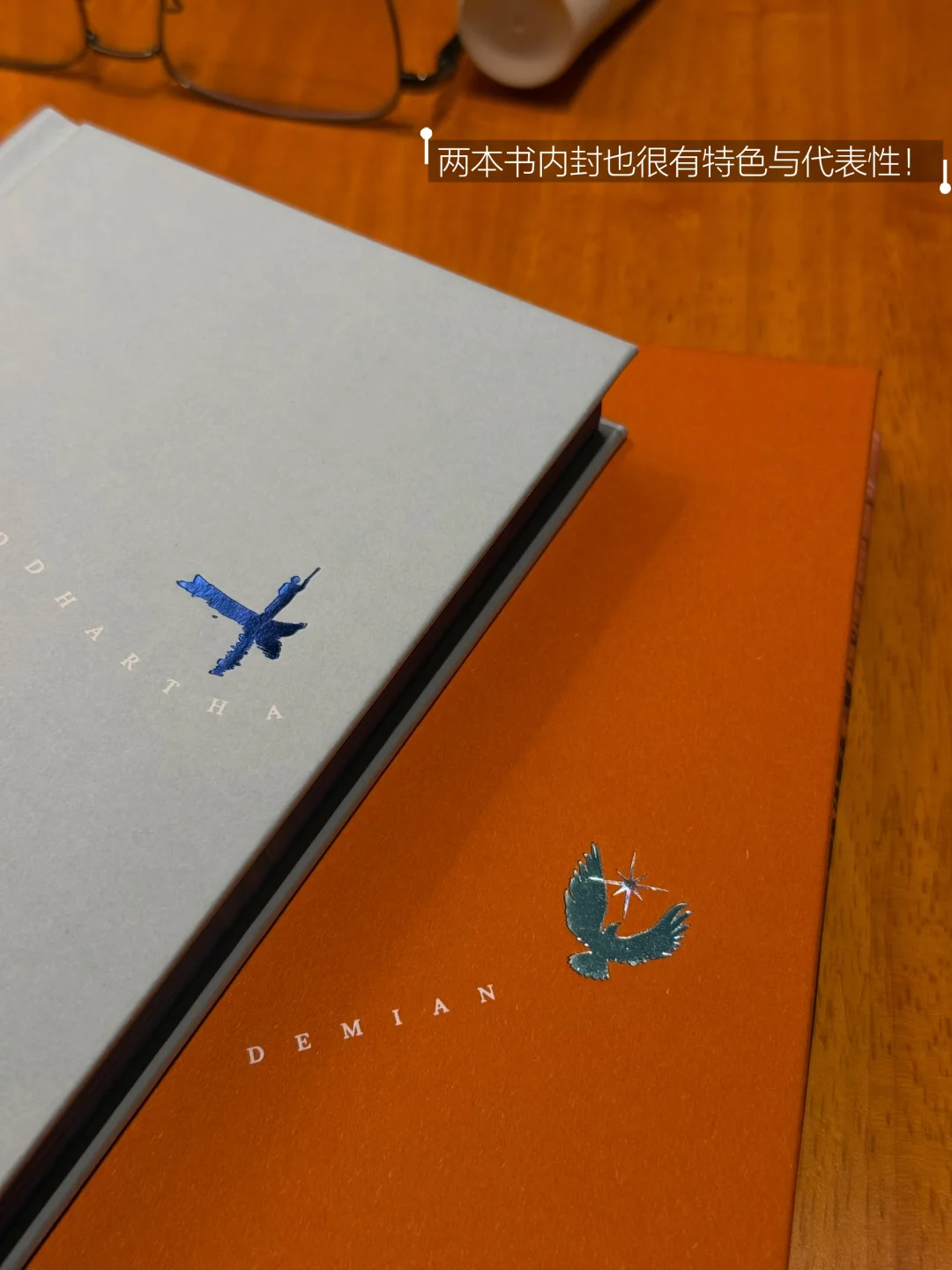 等不及回家,就在旁边的矢量咖啡坐下“拆包验货”了。《悉达多》海蓝色的刷边和《德米安》天蓝色的刷边,和封面自成一体,封面内外都很酷炫。特别喜欢里面的几张磨砂质感的插页,薄如蝉翼般精致美好。