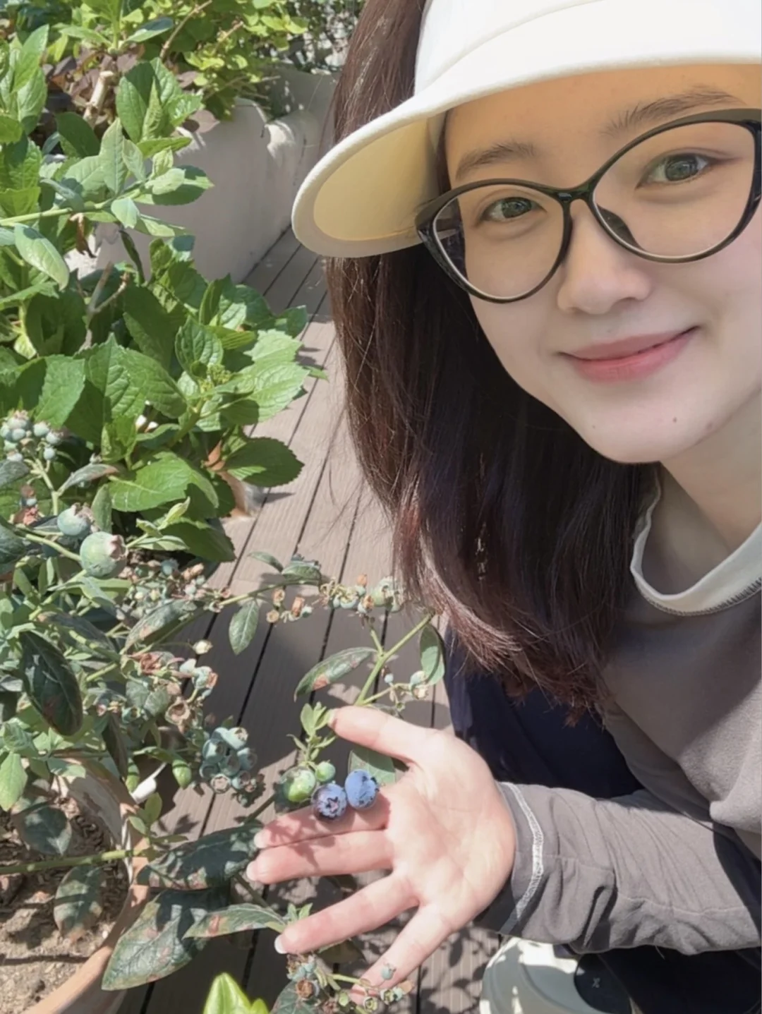 露台上花草正茂盛,种下的蓝莓🫐也结果了