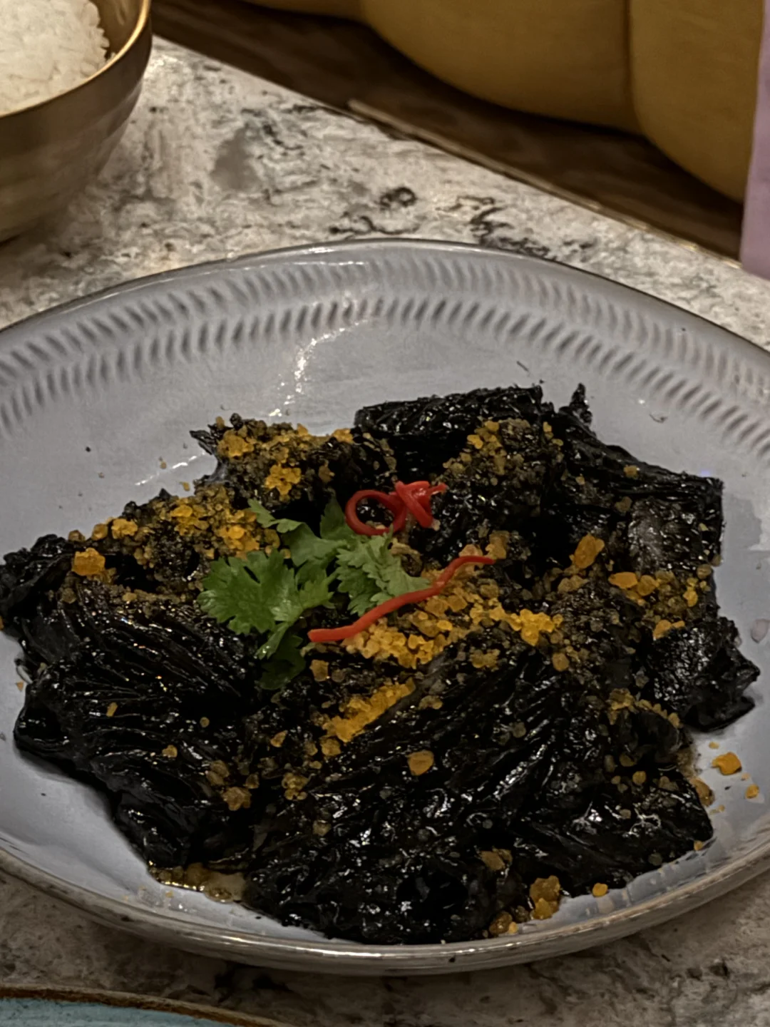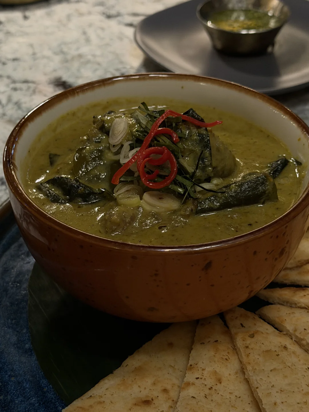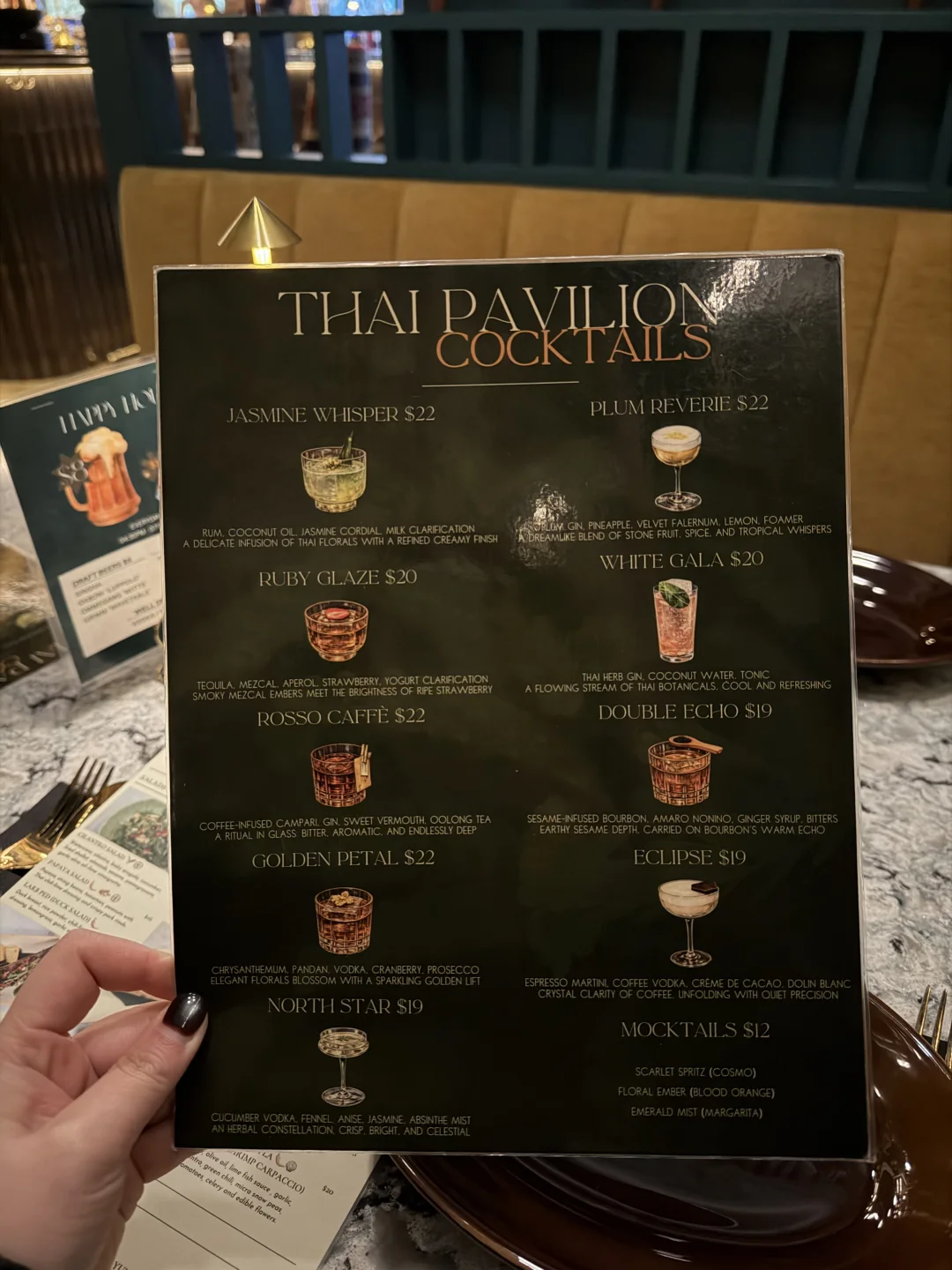最近曼岛的泰餐很卷啊,和朋友约了一家没去过的Thai Pavilion,被谷歌五星勾引了过来,没想到第一反应是他家鸡尾酒好棒啊!(见菜单图5)我们一人试了一杯都蛮喜欢,尤其我这杯Jasmine Whisper(图4),美且美味。不想吃得太撑就点了不同的菜式分享,谁知道因为辣咖喱非常够味而导致最终吃了一肚子米饭扶墙出——Kaeng Ra-Waeng来自泰国南部地区的炖牛肉咖喱,姜黄和虾酱味道鲜美,用蒜气十足的饼子蘸着吃也超爽。另外推荐Muk Dam Khai Khem(图6),泰国服务生小姐姐特意说明,腌制咸蛋黄和爽脆的鱿鱼口感很搭,能吃到满满的脂肪却放不下筷子,配了酸爽的辣酱辅助,免得过腻。下次还来~