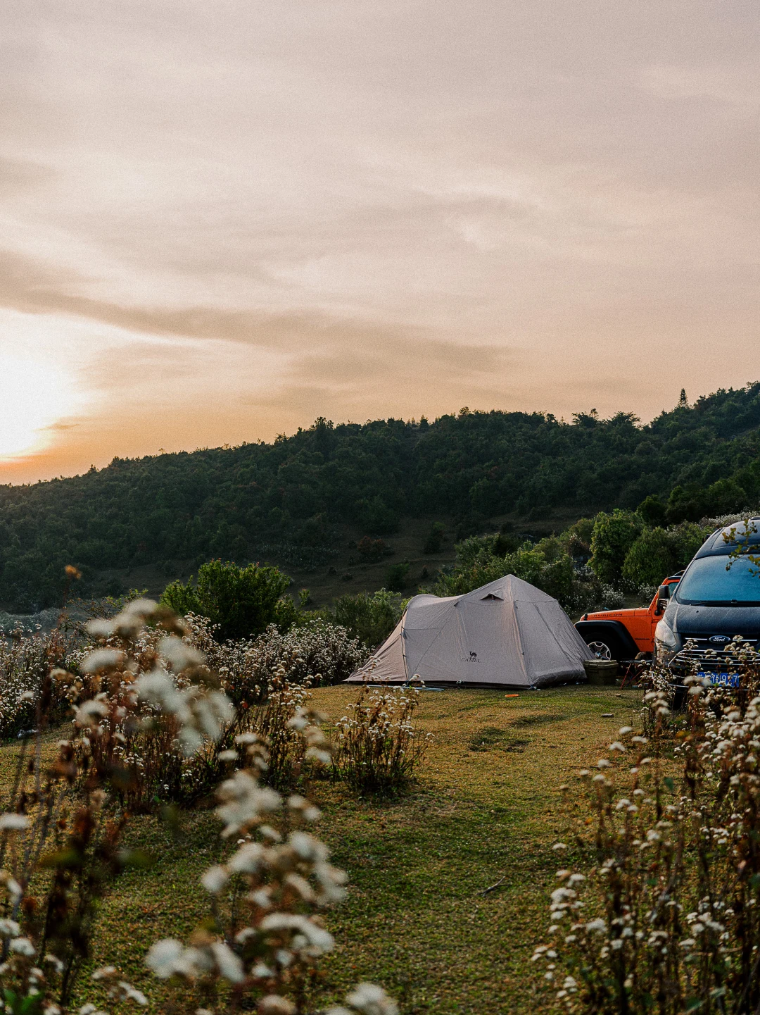 说实话一进草甸我的心就凉了一半,可以说进入了一片墓地陵园区,转念一想也是应清明假期的景了😂有着多年露营经验的老王把营地选择了一座大🪦旁边,避风,有景色,还有清晨的第一缕阳光😂老王下车第一句就问我在这过夜怕不怕,我说:小时候还真怕,现在是真不怕,如果世上真有😜,那还挺好,我和我母亲还能再见一面。
