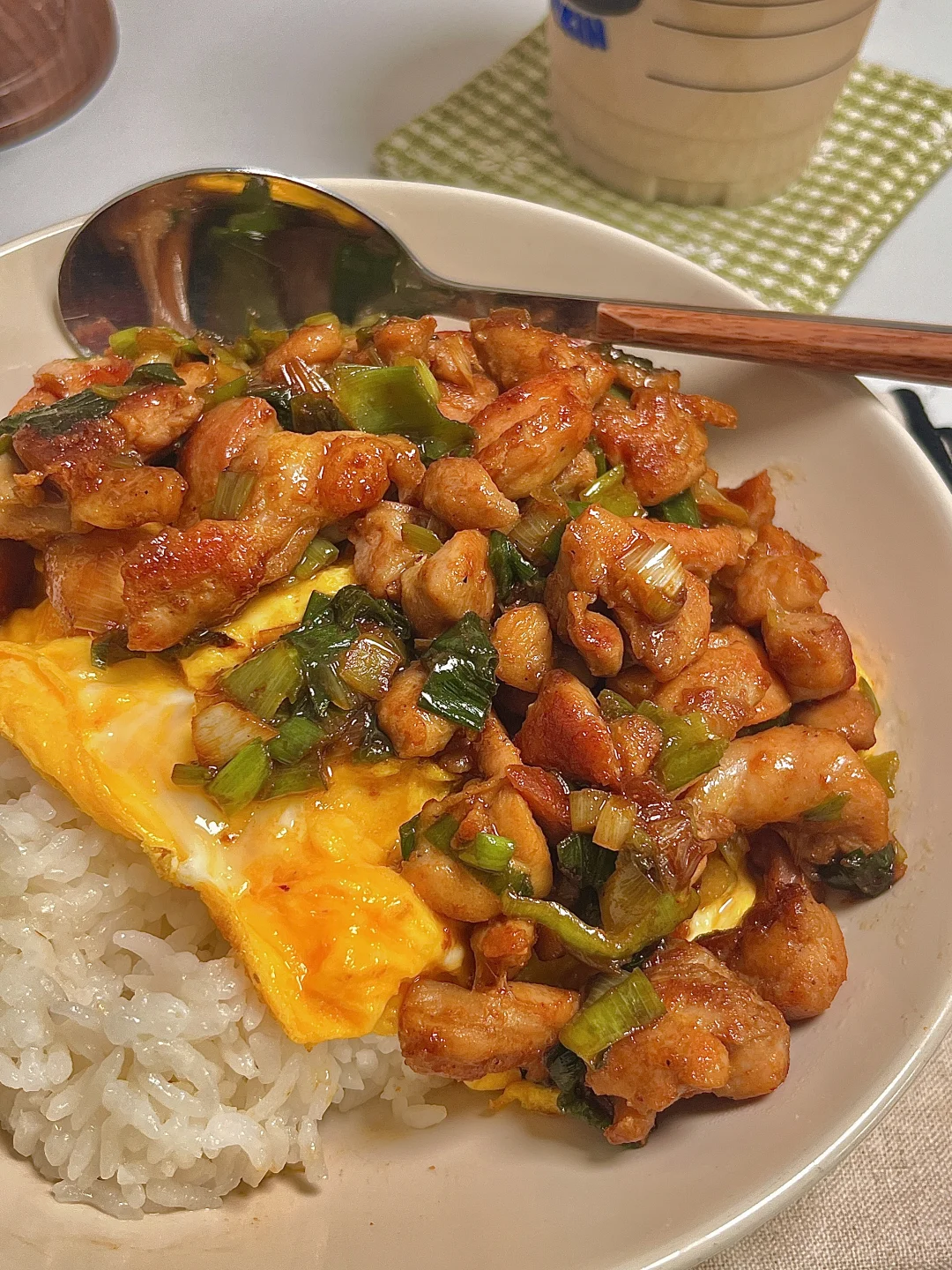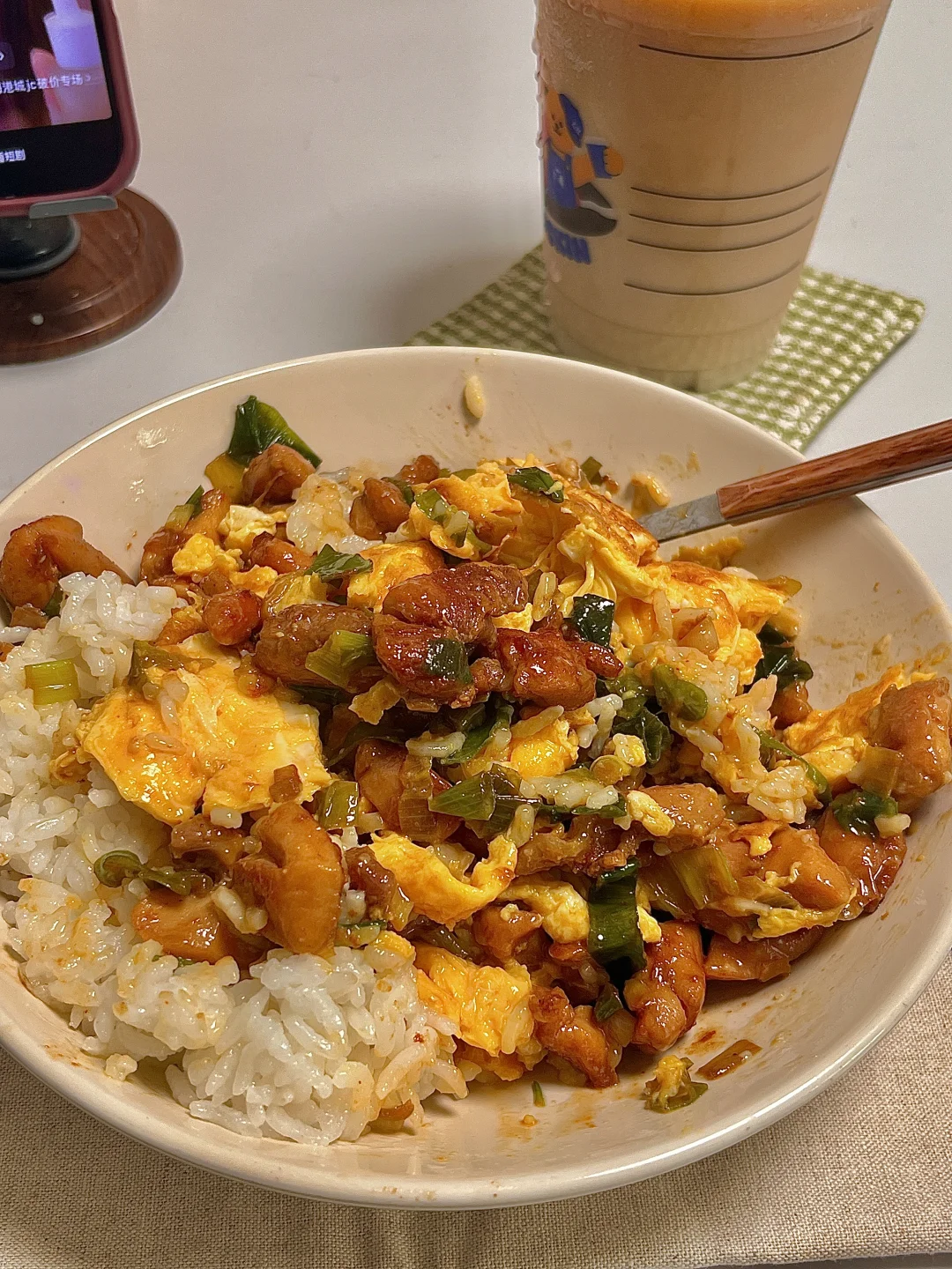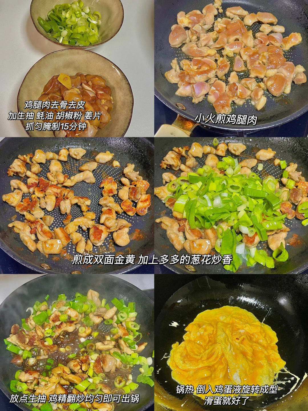 鸡腿肉煎焦焦的拌米饭吃着鲜嫩香 炒鸡下饭的🍚