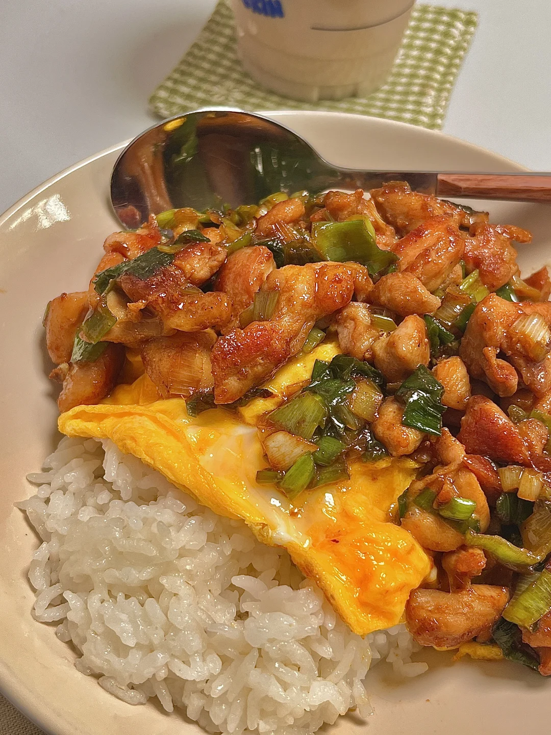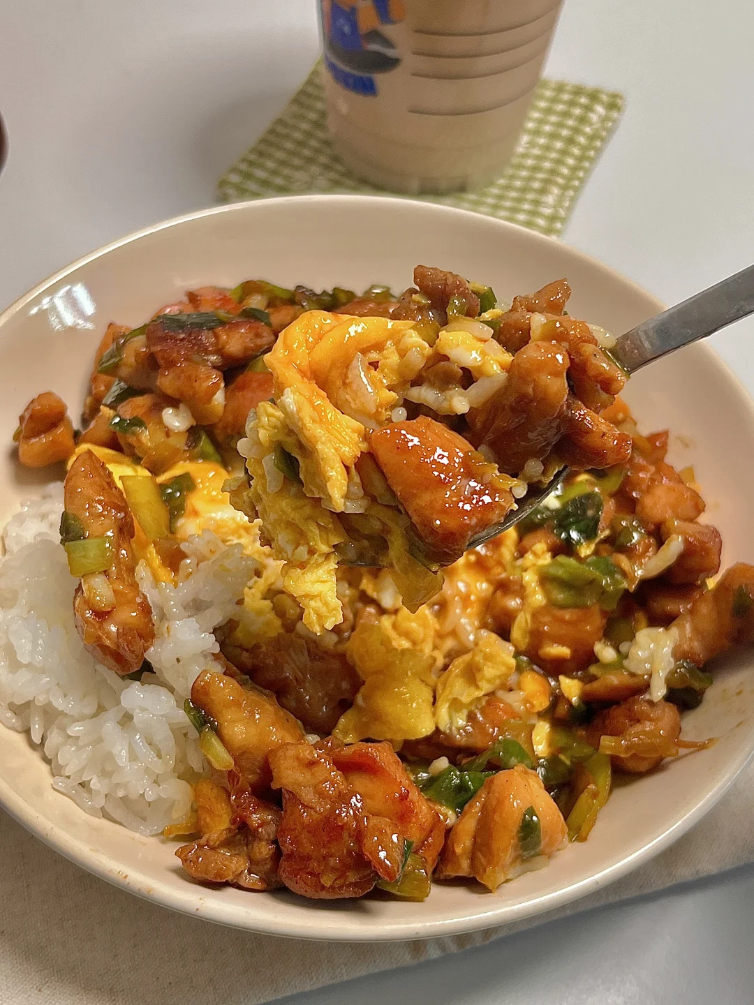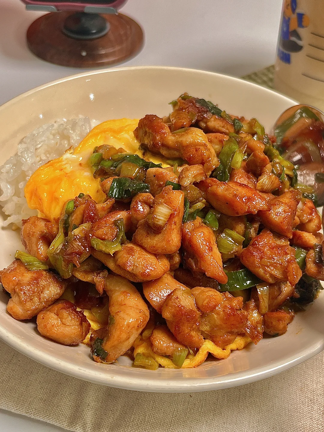 鸡腿肉煎焦焦的拌米饭吃着鲜嫩香 炒鸡下饭的🍚