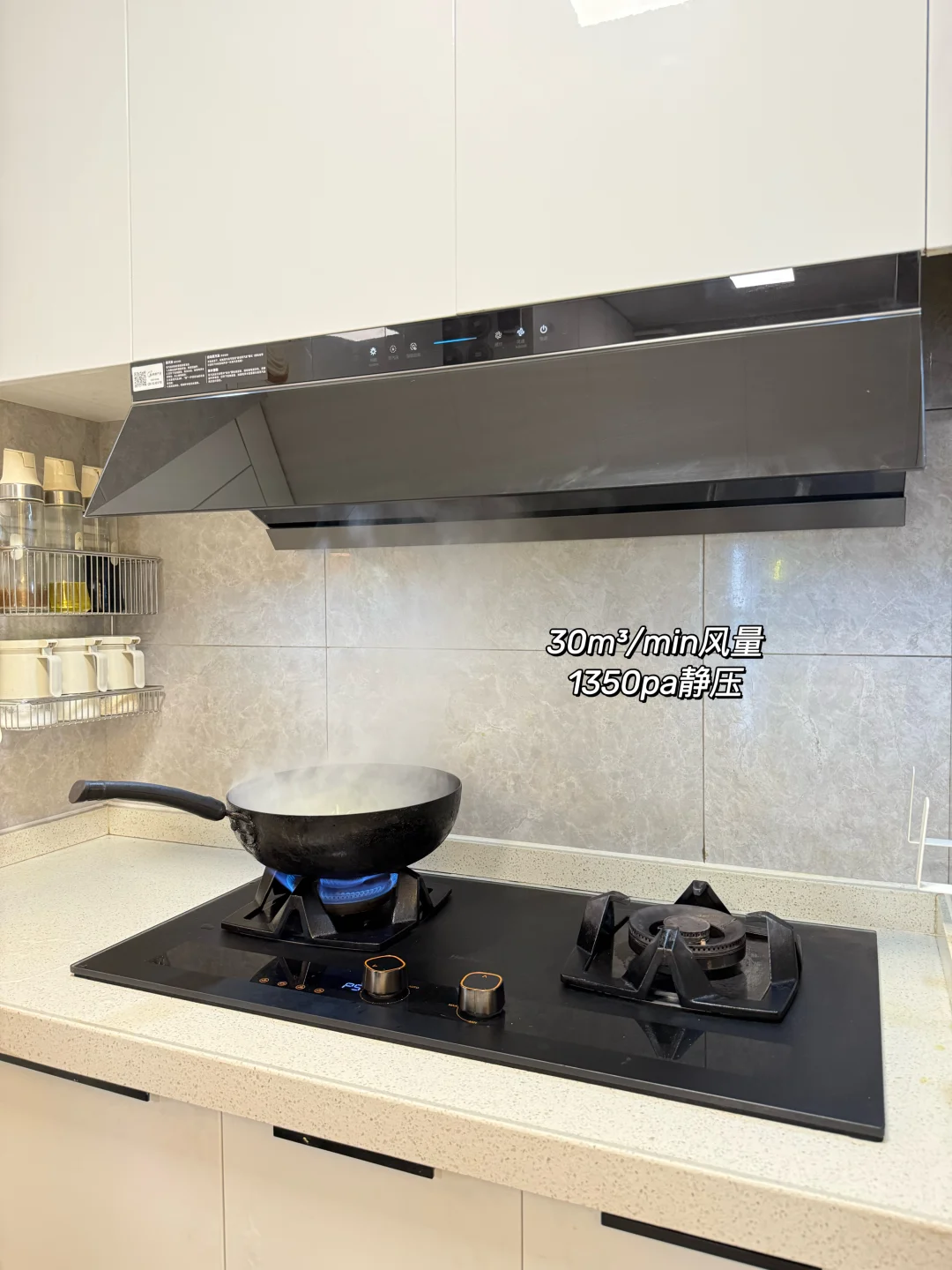 小户型厨房空间小,油烟很容易闷着,这款小西梅油烟机的吸力真的绝了,30m³/min超大风量,还有1350pa静压,30秒就能给厨房换次空气,就算是高楼底层也不怕油烟倒灌,做完饭身上、客厅里一点油烟味都没有,对有娃家庭太友好了!