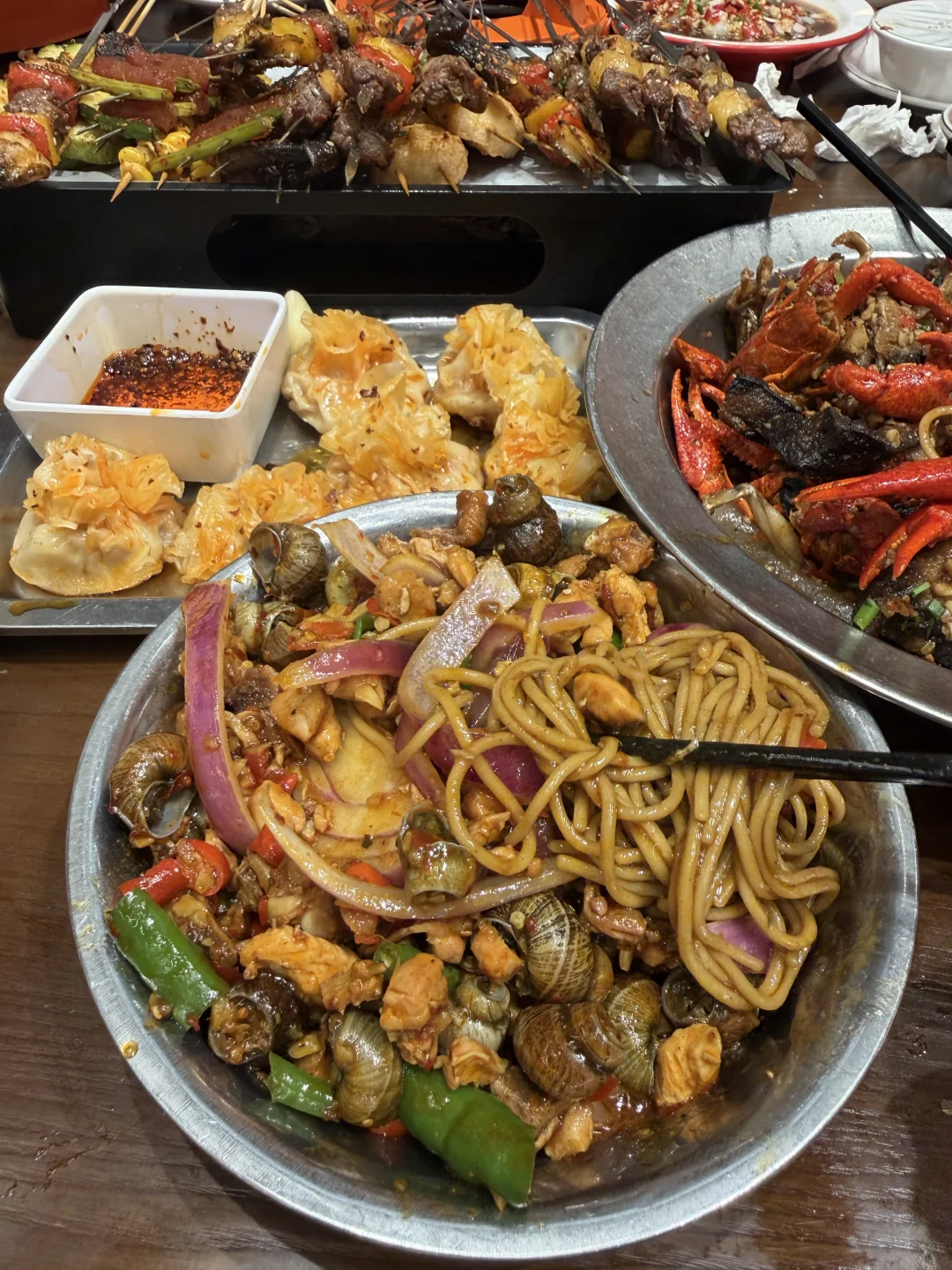 臭豆腐牛蛙小龙虾拌面🍜!!巨巨巨巨爽!