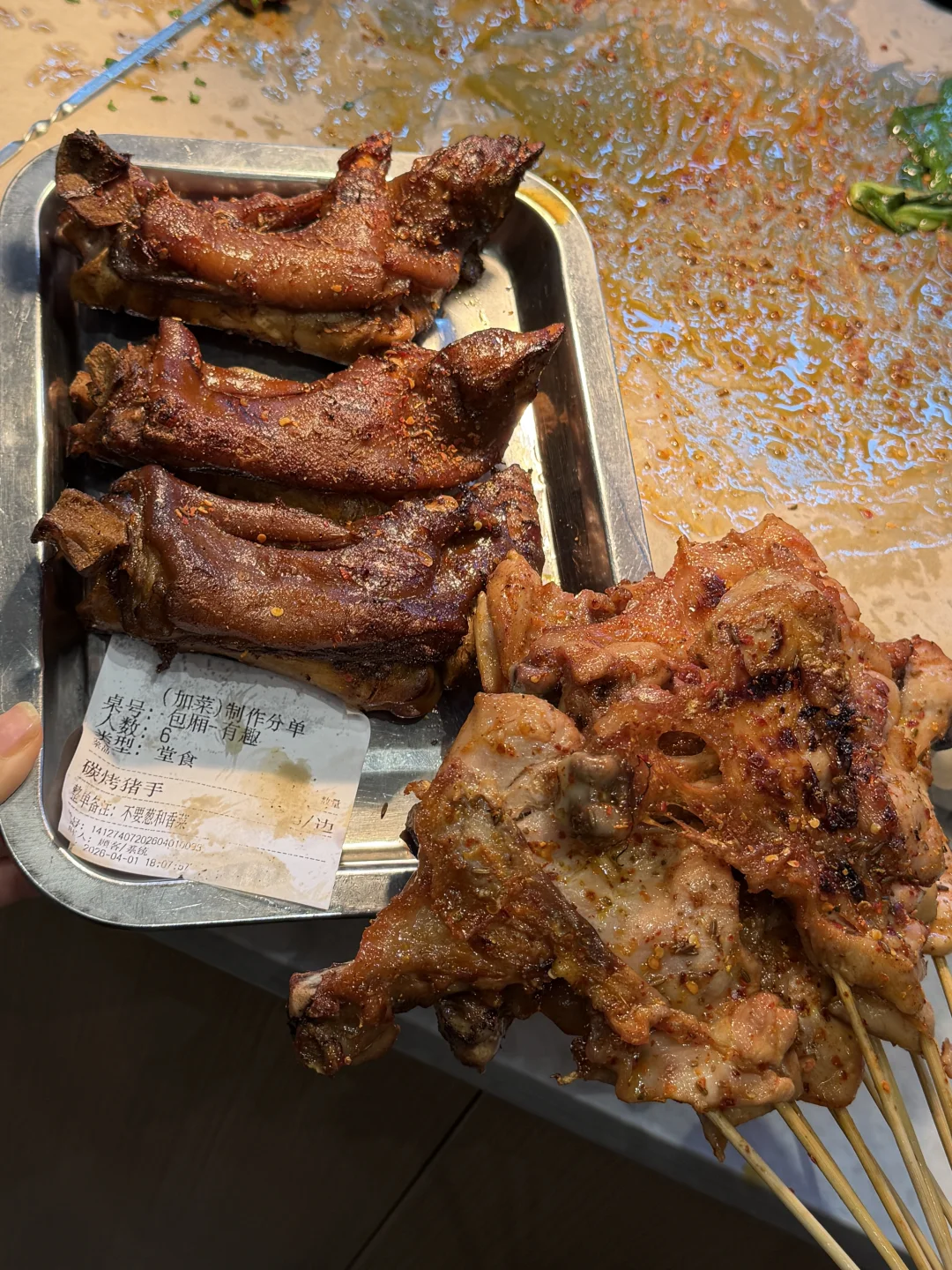 烤猪脚和烤鸡翅无脑冲就对了,每桌都点!
