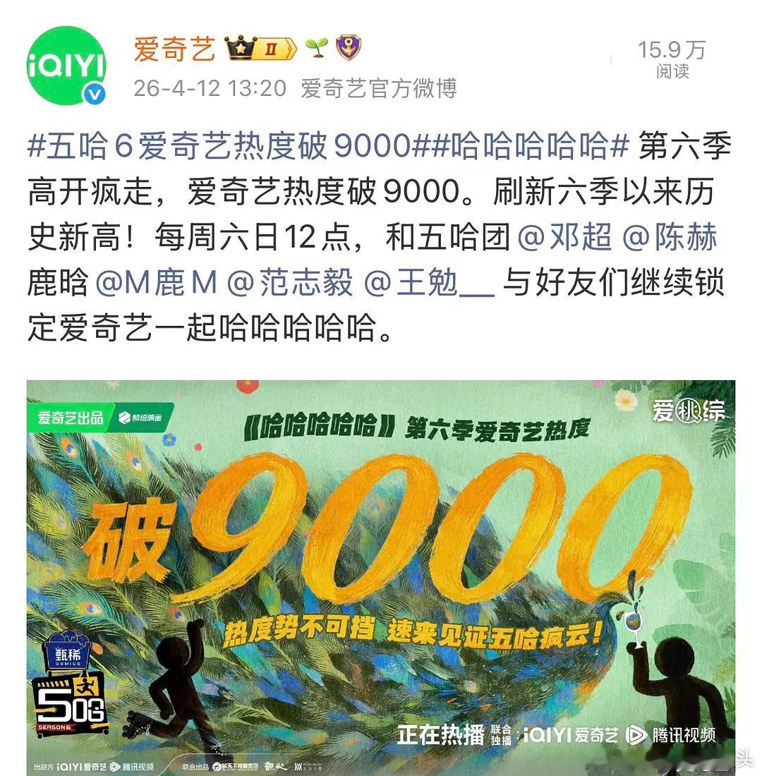 五哈6第二期,🥝热度破9000,🐧热度破26000,双平台均刷新系列新高