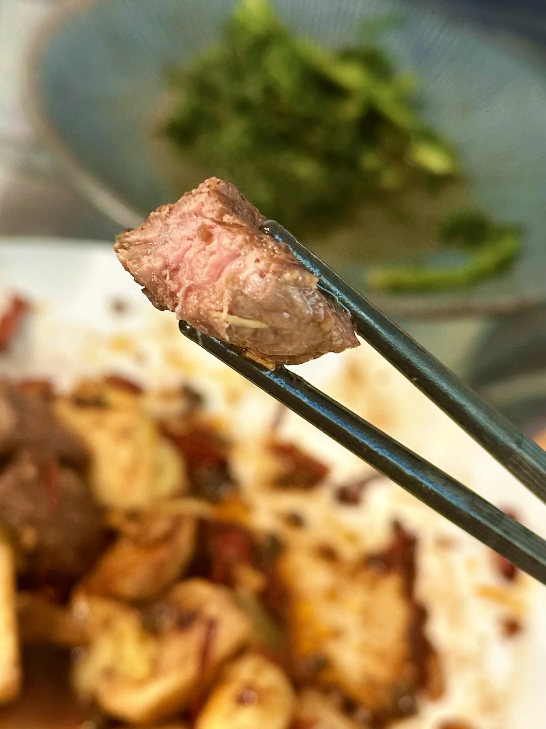 单吃竹笋不免清寡,单吃牛肉也缺少新意,但这两个食材结合起来就刚刚好。牛肋条丰富的油脂,让笋的口感变得润而不涩,纯留鲜美;而竹笋极具个性的风味和清脆口感,也巧妙地让牛肉多吃不腻,只余肥美。再配上鲜香麻辣的调味,这色面香气味道,再清高挑剔的文人,也得咽着口水多下一碗饭~