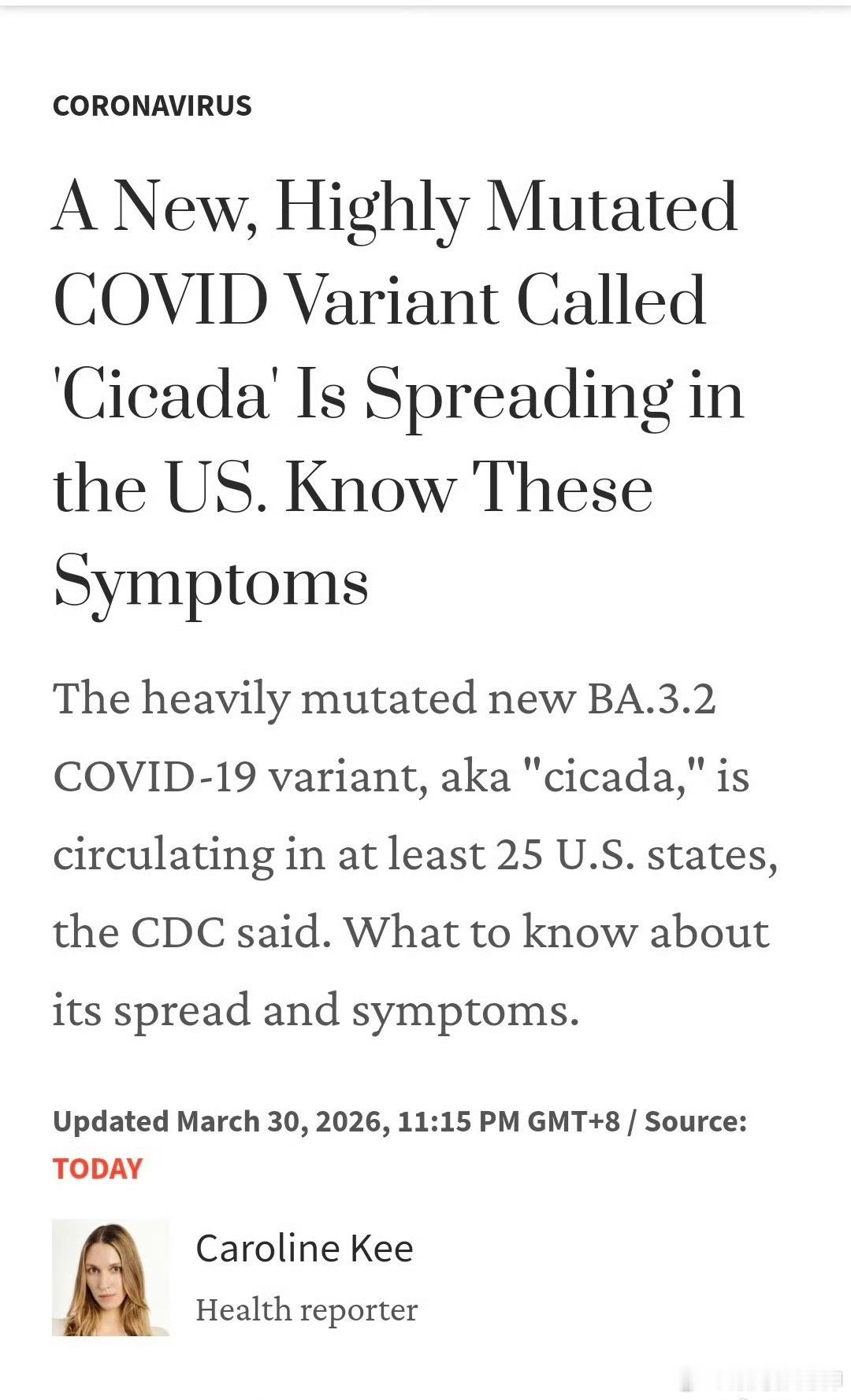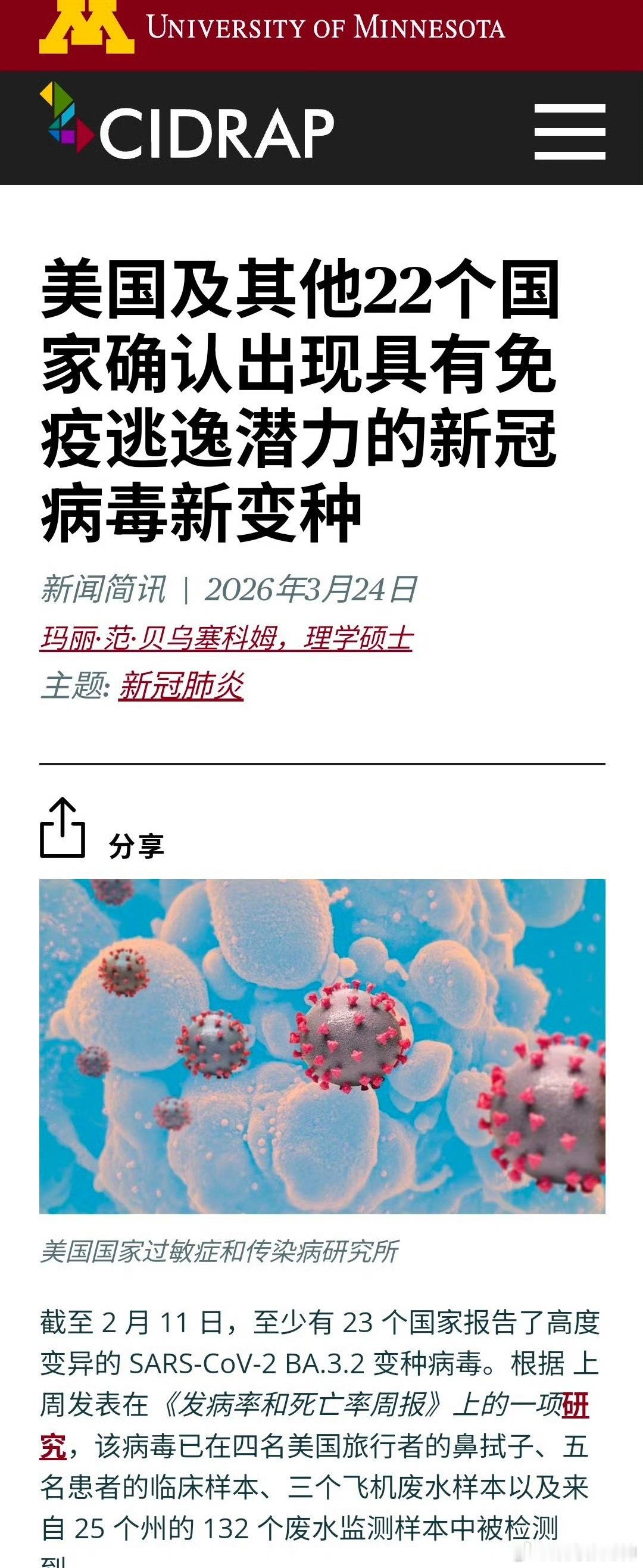 新冠又出现了新变异株,代号BA.3.2,外号“蝉”。目前已经在二十多个国家和地区被检测出来。
