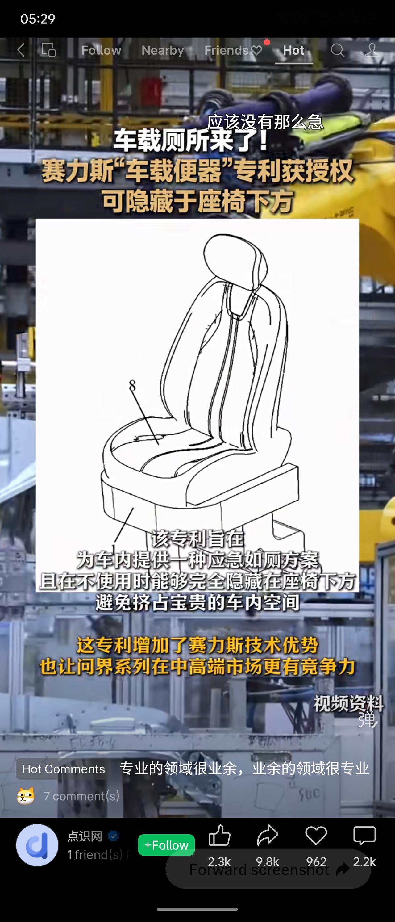 赛力斯“车载便器”专利获授权,装置可隐藏于座椅下方,提供应急如厕方案且不占空间。此举解决长途出行痛点,增强技术优势,提升问界系列竞争力。网友调侃“专业领域很业业余,业余领域很专业”,幽默中凸显实用创新尴尬,考验实际场景与用户体验。