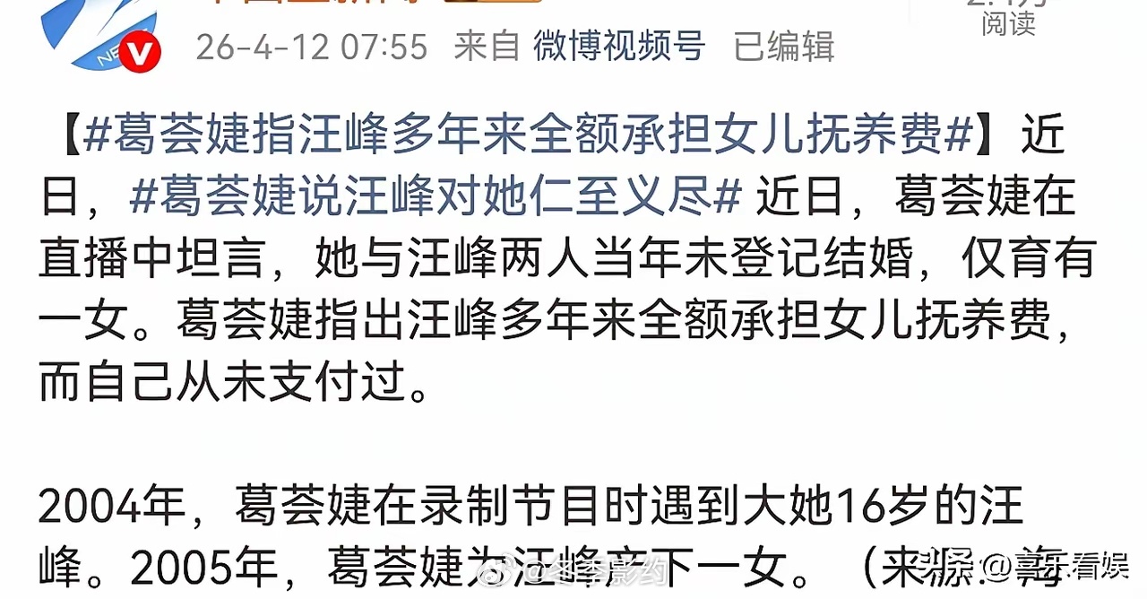 汪峰,口碑暴涨!4月12日一大早,汪峰冲上了热搜,这次不是因为和女友森林北同框,也不是陪孩子,而是因为他的前任葛荟婕。没想到,这次汪峰居然靠葛荟婕的直播,路人缘直接拉满,口碑瞬间暴涨。事情是这样的,葛荟婕最近开直播,居然主动聊起了她和汪峰的过往,而且这次不是吐槽,是实打实的澄清。她说当年和汪峰在一起的时候,俩人根本没登记结婚,就生了一个女儿。重点是,她亲口说,这么多年来,汪峰一直全额承担着女儿的抚养费,她自己一分钱都没出过,还说汪峰对她仁至义尽。有时候网上的瓜真的不能只听一面之词,以前被带了那么久的节奏,现在才知道,原来汪峰才是那个一直闷声做事的人。这次也算是给了他一个迟来的公道,口碑直接逆风翻盘,暴涨的路人缘,就是大家对他负责任的最好认可吧。