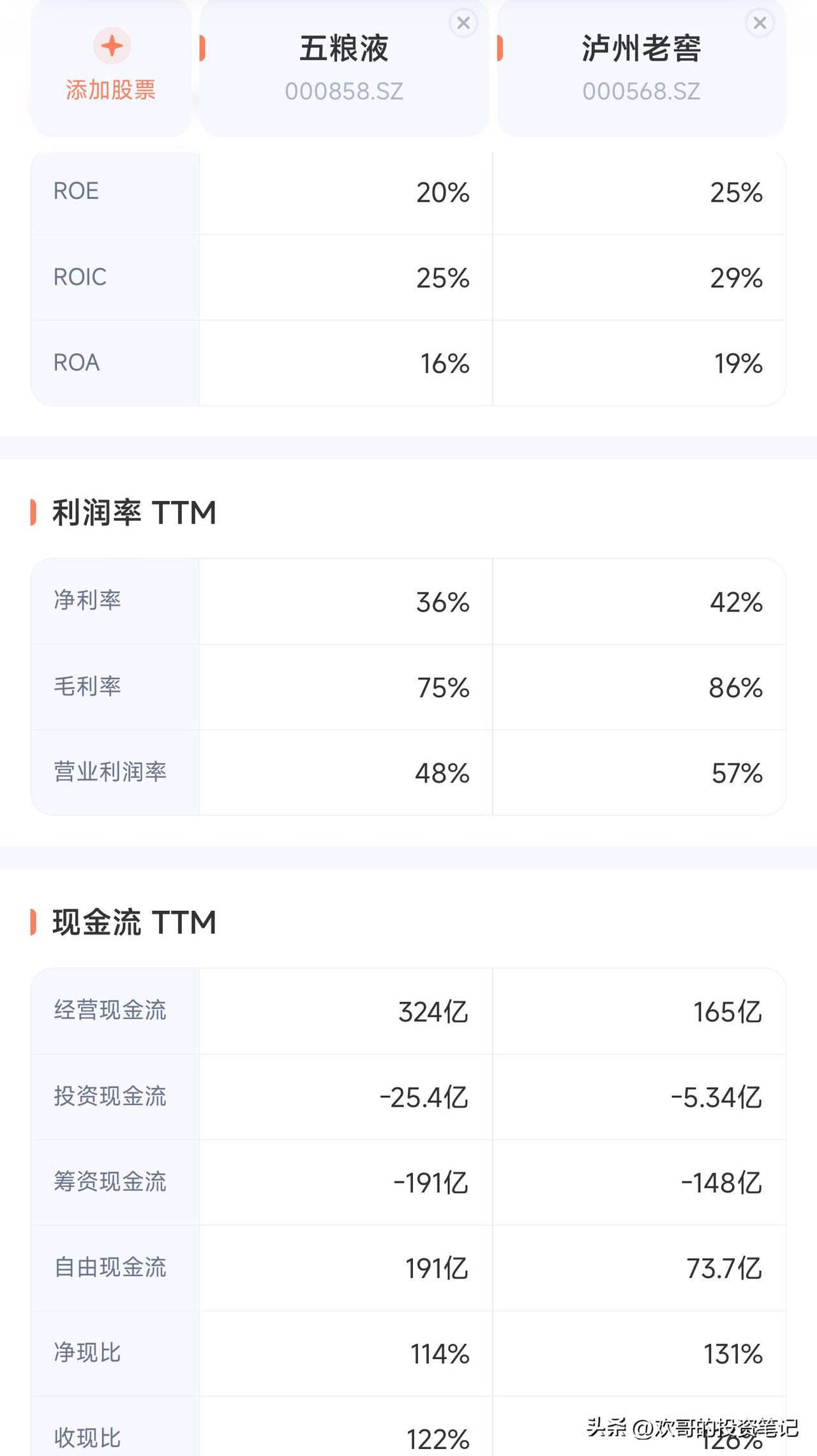 但头部酒企不一样。就算五粮液、老窖今年业绩直接腰斩,对应也不过20-25倍的PE。就算这样,它们的毛利率、净利率、ROE、股息率,照样能跑赢A股绝大多数公司。更别说这里的报表,说不定还有意做低了基数,实际的经营现金流,大概率还会继续领先报表上的利润数字。