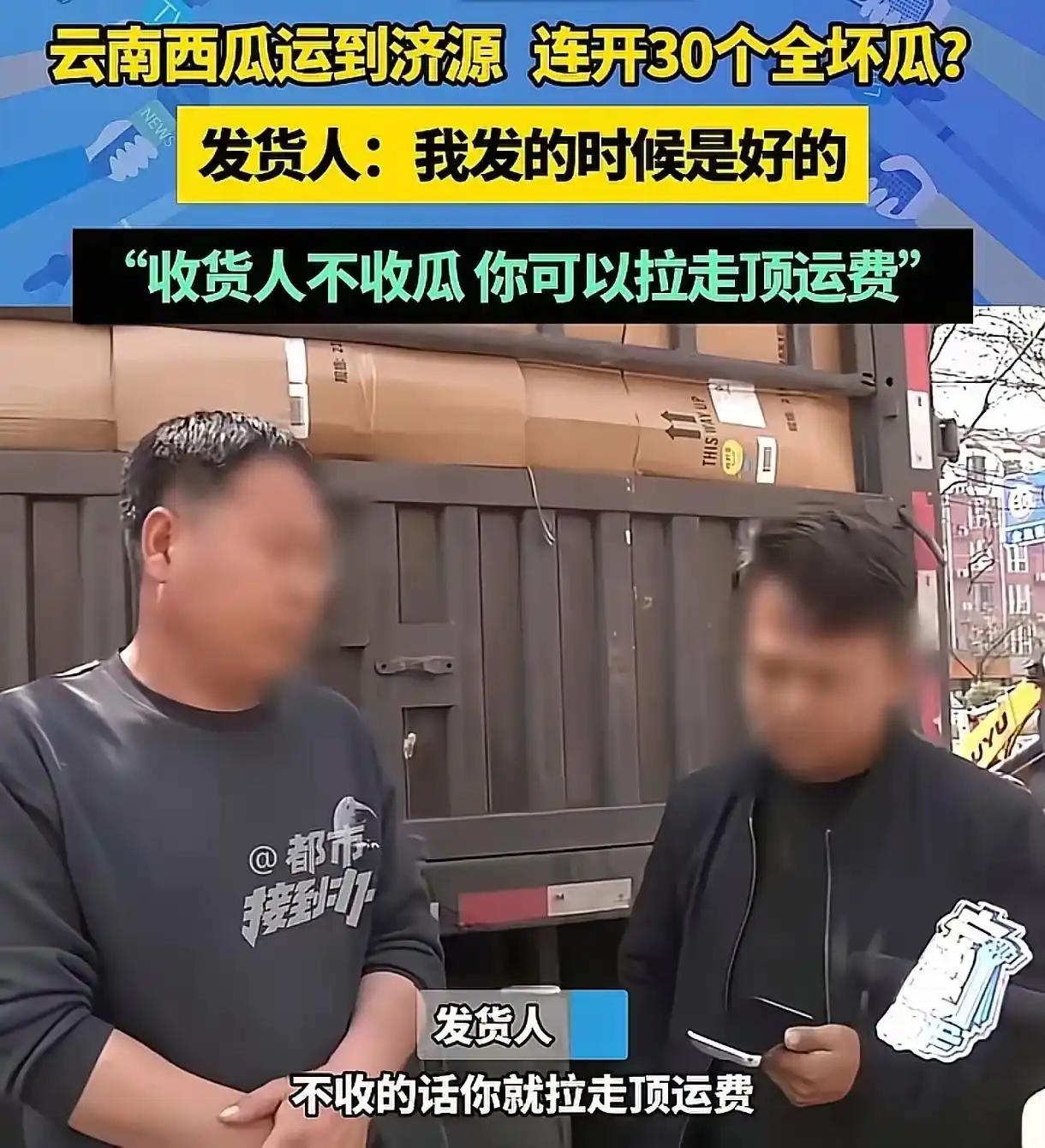 收货方当场反驳:我要的是高次瓜,外表有点不好看可以,但里面必须是好的。现在这个瓜外表光鲜、里面全烂,颠簸能颠成这样?