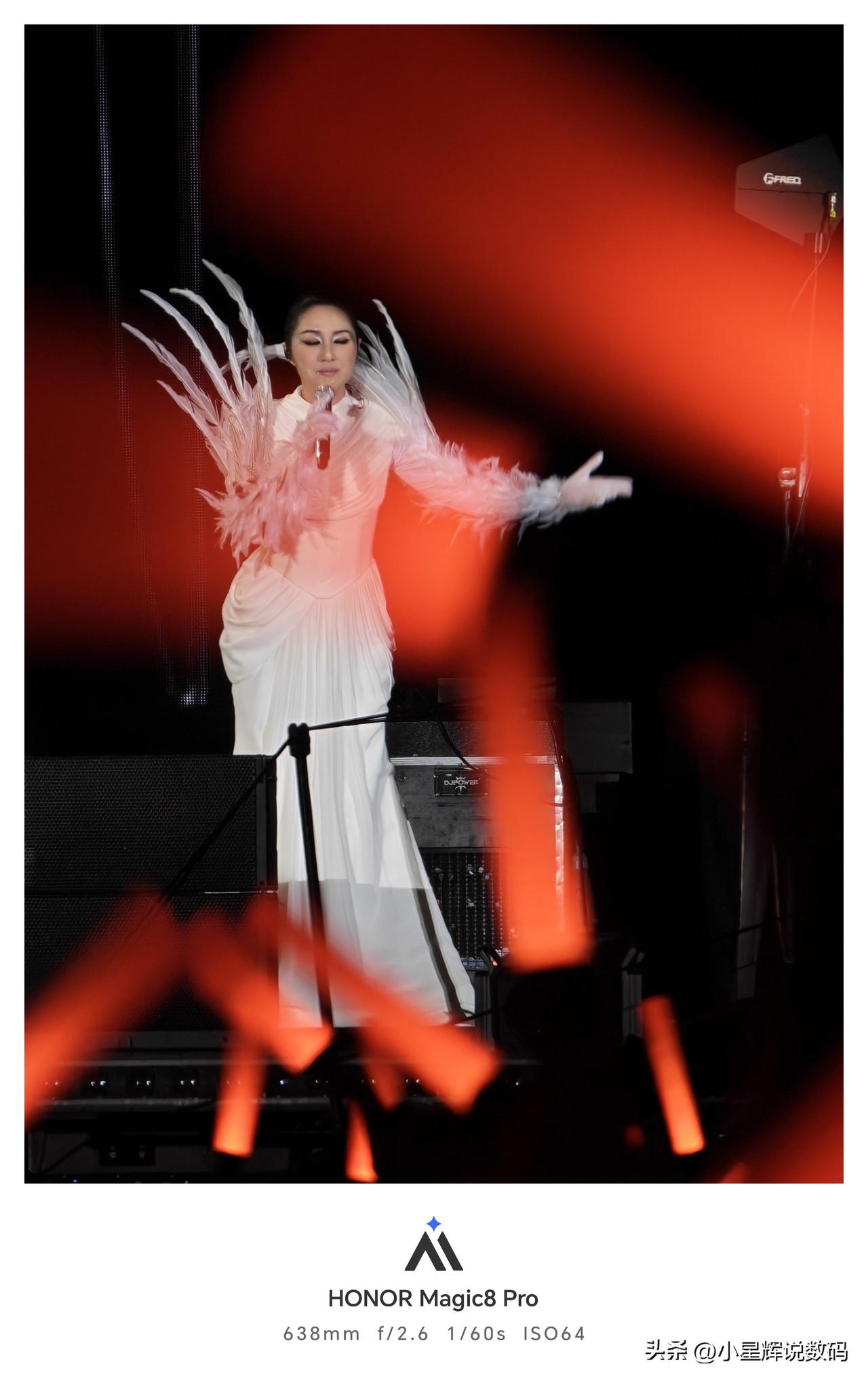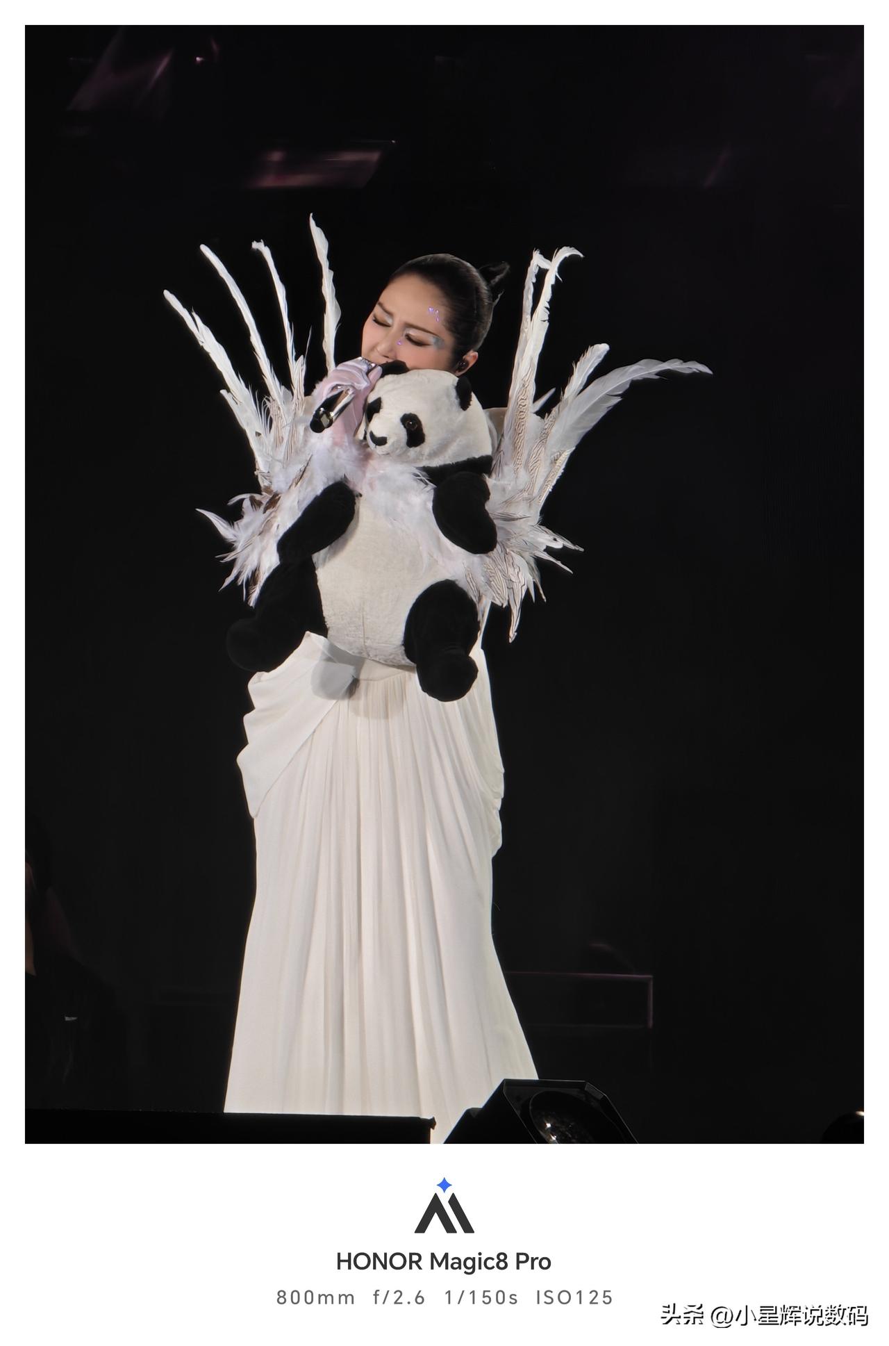 杨千嬅的演唱会真的不错,这次造型师还是下了很多功夫,每一套都很有高级感,哪怕就是在很远的观众席,使用荣耀Magic8 Pro拍出来还是很有质感,灯光不会过曝,暗处也很有细节,杨千嬅抱着熊猫唱的那一段也很棒,就和Magic8 Pro的2亿像素拍照一样给人很稳的感觉。杨千嬅