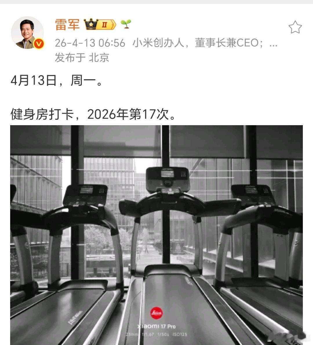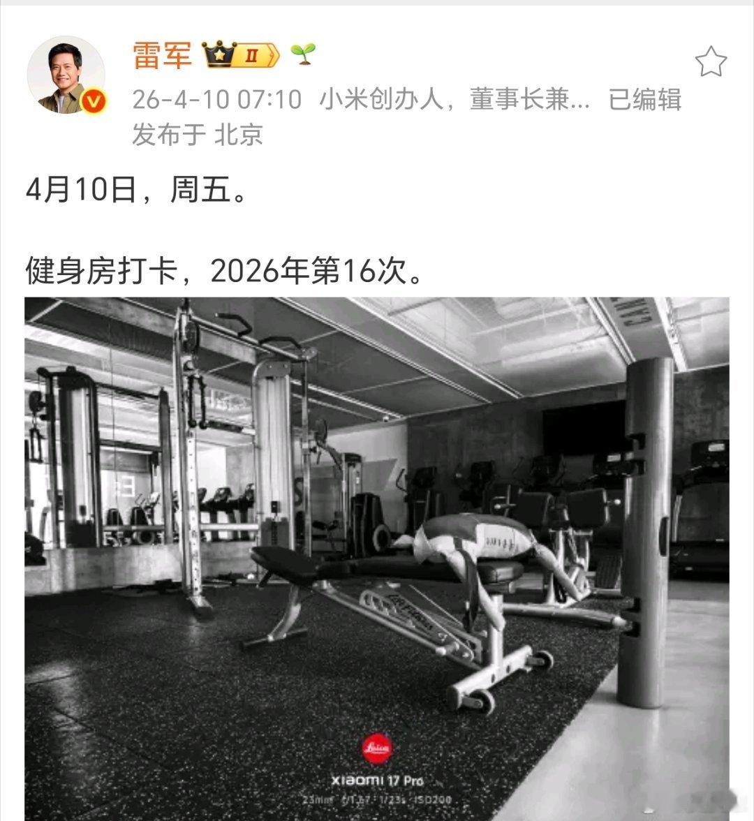 近年来,雷军养成了健身的好习惯,在社交平台除了宣发小米产品外,最多的就是晒自己去健身房打卡日常。科技先锋官