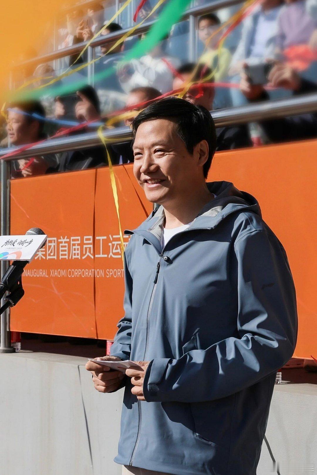 4月11日周六,雷军现身小米首届员工运动会开幕式,穿搭时尚休闲,整个人也备显年轻