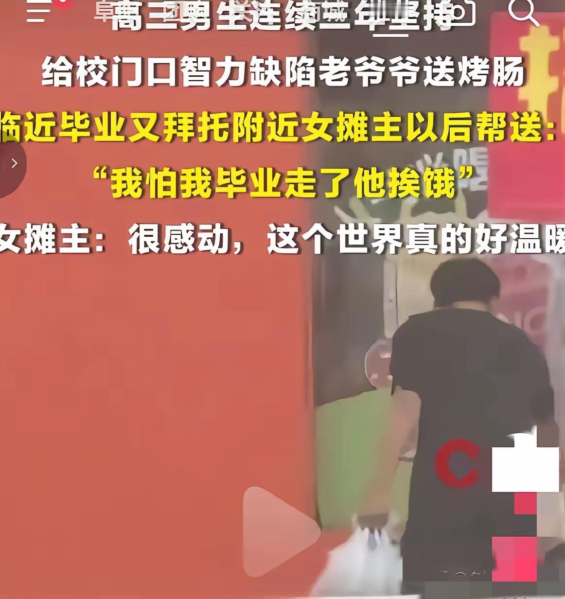 这件事能让全网破防,从来不是因为一根烤肠有多贵重,是一个高三学生,用整整三年的时间,把一个素不相识的智力缺陷老人,放在了自己的日常里。