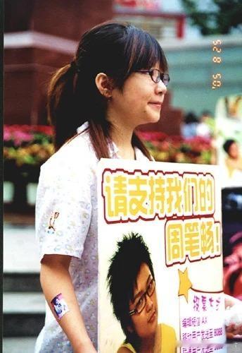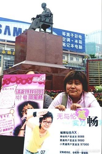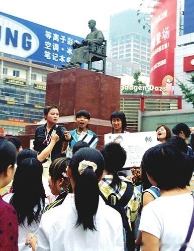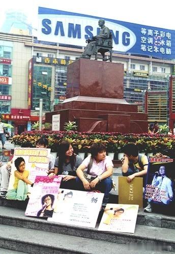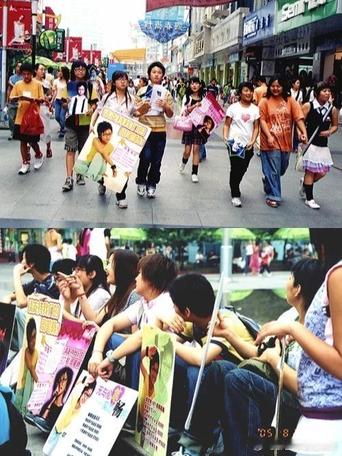 2005年8月25日超级女生决赛前的成都春熙路上为周笔畅拉票的粉丝们