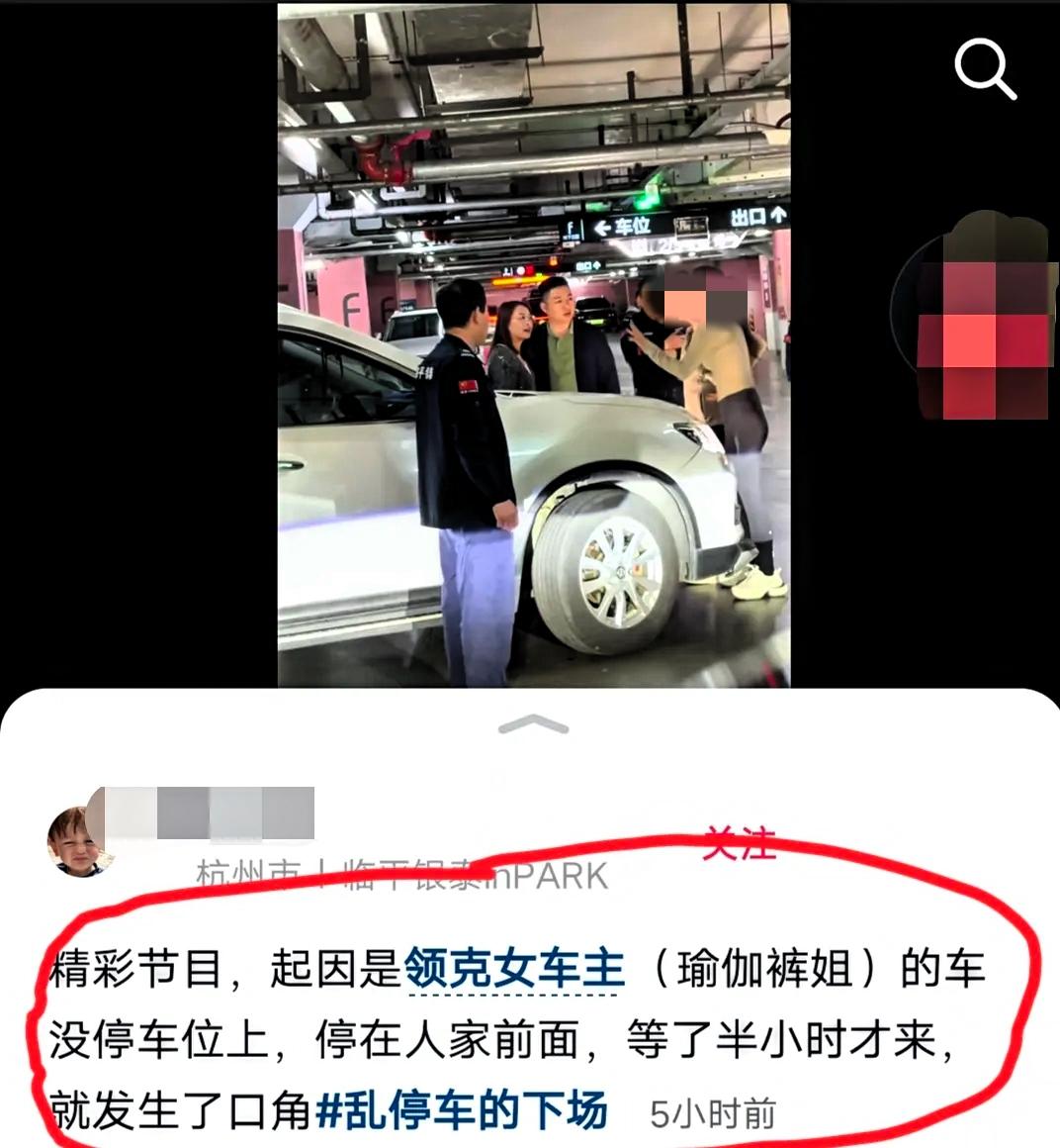 浙江杭州,发生在车库的一起纠纷,起因大概是领克女车主把车停在过道上走开了,这一违