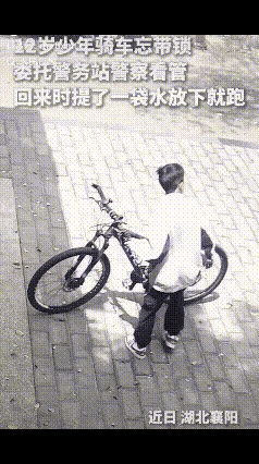 “12岁男孩火到人民日报了!”近日,湖北襄阳,一男孩骑自行车出门忘带车锁了,就把自行车停在警务站门口,然后进去询问值班民警,能不能把车放这儿帮忙看一下,女民警很爽快的答应了,不料,男孩回头取车时,竟放下一装水,头也不回的跑了!