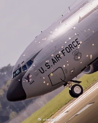 编号59-1444的美军KC-135R加油机已经从沙特阿拉伯苏丹王子空军基地返回英国维修,该机全身遭受了大范围的破片损伤,全是补丁。